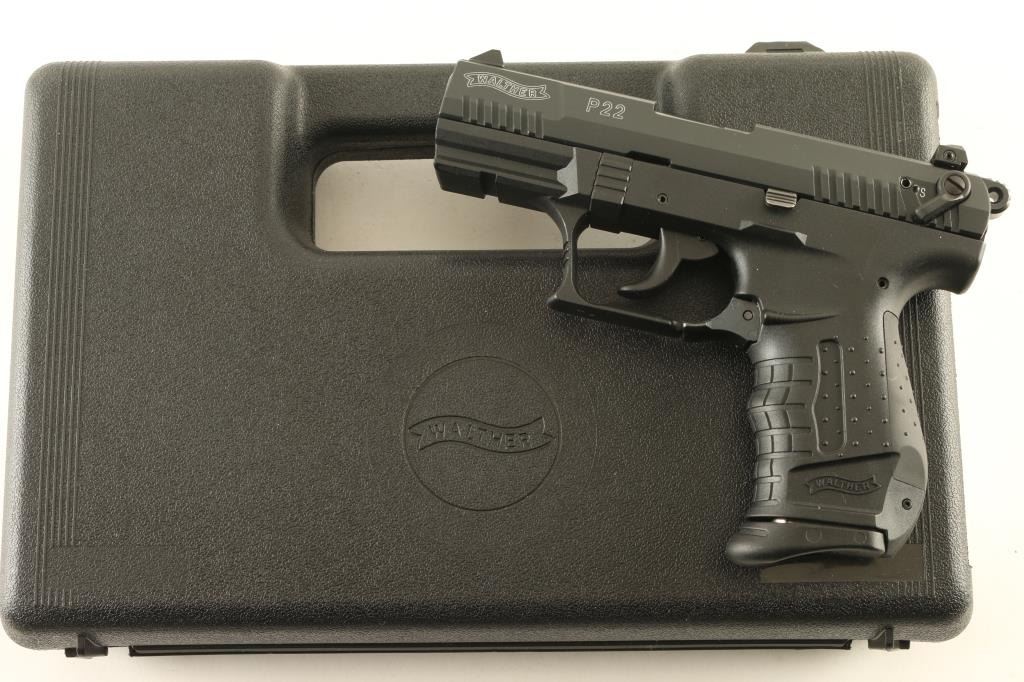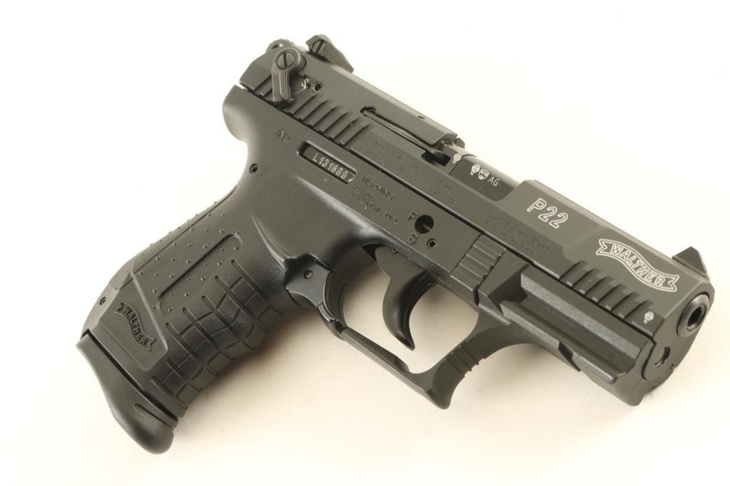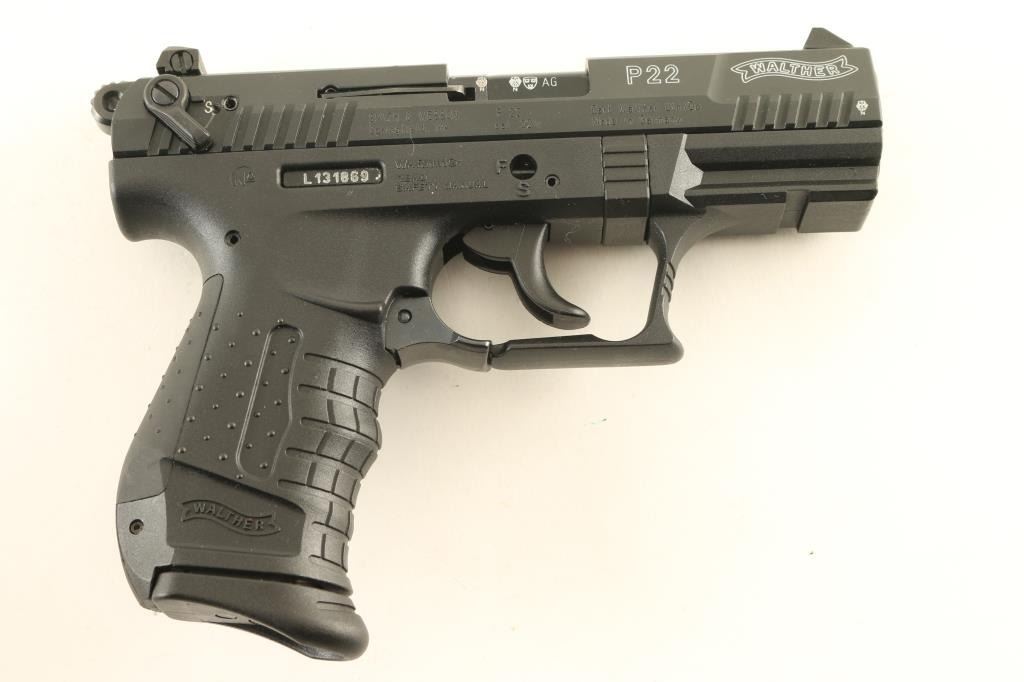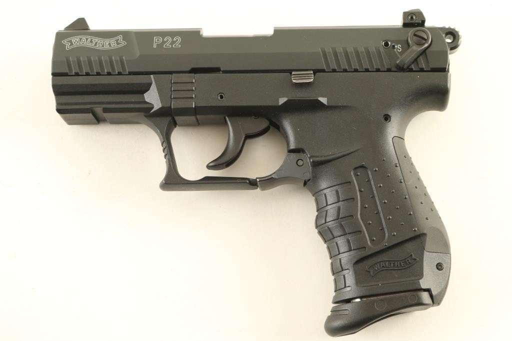 German semiautomatic rimfire pistol imported by Smith & Wesson, Springfield MA. Features matte black metal finish, textured black polymer frame with accessory rail & replaceable backstrap inserts, 3.4" barrel, adjustable 3 dot sights, ambidextrous magazine release, ambidextrous slide mounted manual safety,. Bore is excellent. Overall excellent external condition, with few signs of handling. Includes (1) magazine, manual, factory hard plastic case. Condition is NRA Excellent *** Modern Firearm ***
