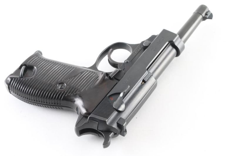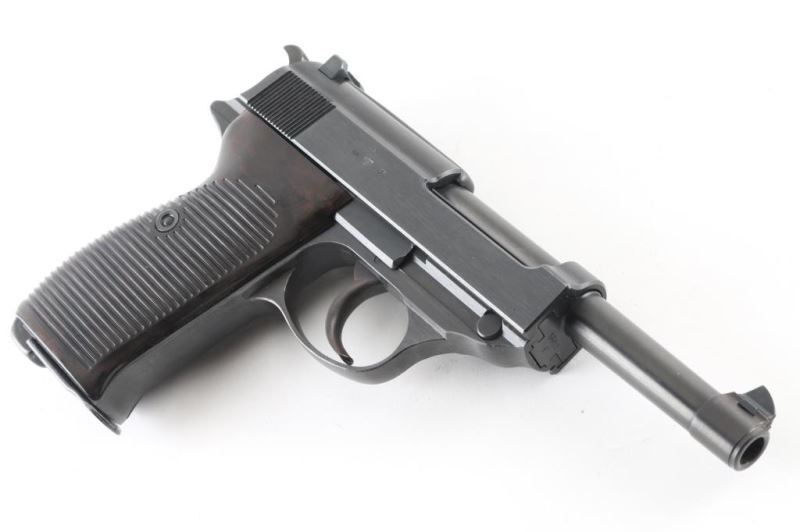 Pistol. Semi-Automatic. 8 rd Magazine. Third Reich era military issued sidearm. 4.9" barrel. Short recoil, hinged locking piece assisted breechblock. ac 42 Matching serial numbers including the locking block. Waffenamts, Eagle/359. All stampings are crisp/clear. Bore appears excellent/bright. Bakelite grips excellent. Blued finish is about 99% with some very minor scratches Original magazine with waffenamt' and "P.38". Pistol is in almost new condition. One of the nicest I've seen. NRA Condition-Excellent. C&R firearm