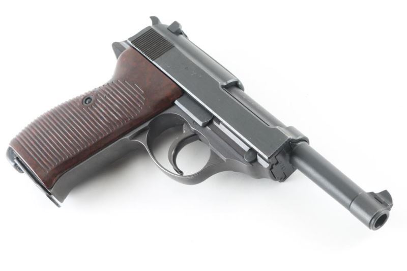 Pistol. Semi-Automatic. 8 rd Magazine. Third Reich era military issued sidearm. 4.9" barrel. Short recoil, hinged locking piece assisted breechblock ac 45."2741 ac 45" in straight line on left slide. All matching serial numbers including the locking block. Waffenamt Eagle/359 on the parts. "4" stamped on sight blade. Safety S, and Fire F colored in white and red. Bore appears excellent/bright. Bakelite grips are very good.. Blued finish is about 94% with some minor scratches, and edge wear. There is a spot on discoloration on the barrel. The fore strap has dulled a little from handling. Original magazine with "jvd" with Eagle/WAa706 waffenamt. NRA Condition-Near Very Good. C&R firearm