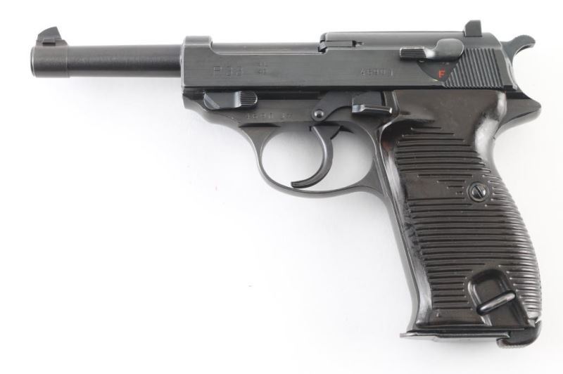 Pistol. Semi-Automatic. 8 rd Magazine. Third Reich era military sidearm. 4.9" barrel. Short recoil, hinged locking piece assisted breechblock. ac 42 Matching serial numbers including the locking block. Waffenamts, Eagle/359. All stampings are crisp/clear. Bore appears excellent/bright. Bakelite grips excellent. Blued finish is about 99% with some very minor scratches. Original magazine with waffenamt' and "P.38". A really nice conditioned P.38. NRA Condition-Near Excellent. C&R firearm