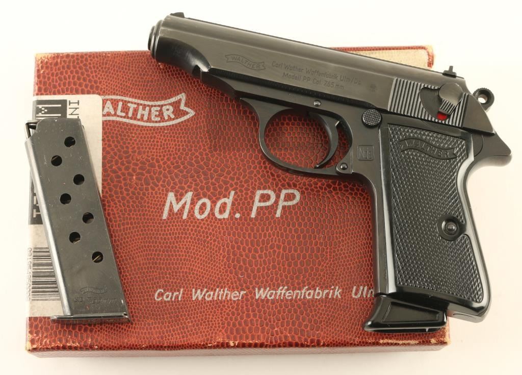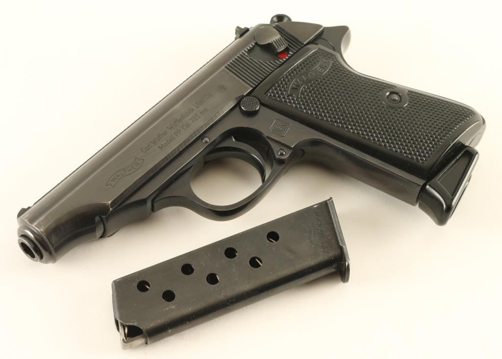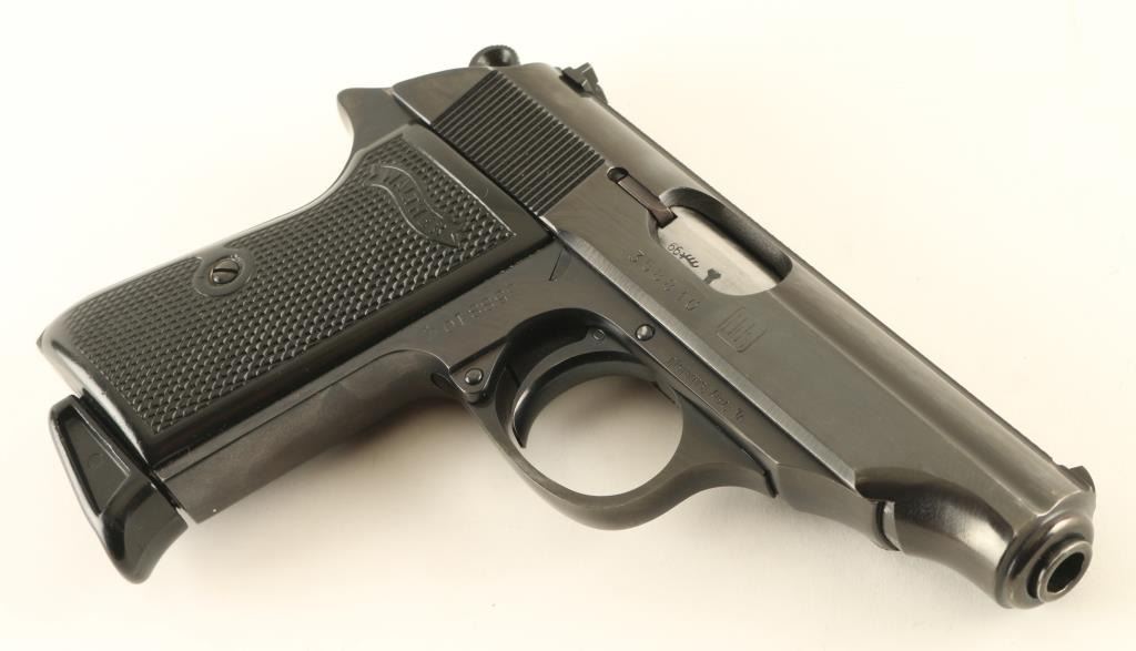 German semiautomatic pistol, imported by Interarms,Alexandria VA. Niedersachsen State Police marked, manufactured circa 1966. Features blued finish, checkered black plastic Walther banner grips, 3.8" barrel, fixed sights, double/single action, slide mounted decocker safety, pushbutton magazine release. Bore is very good or better. Retains 90% blue, with bare metal visible near muzzle, small spot on left side of frame, on sharp edges. Grips are excellent. Numbers match on frame & slide. Includes (1) flat bottom and (1) finger rest magazine, manual, good condition Walther cardboard box. Condition is NRA Very Good ++ *** C&R Firearm ***
