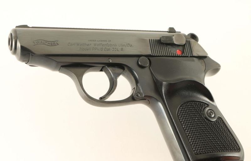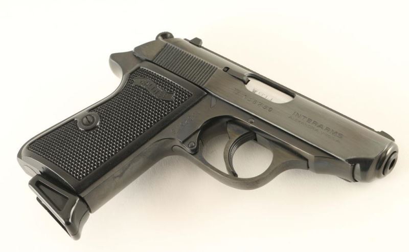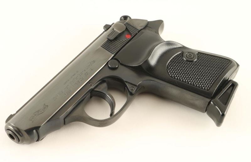 French made double action semi-automatic compact pistol chambered in .22 Long Rifle, circa 1970's. Imported by Interarms of Alexandria, V.A. with import marks on the right side of the slide. Features all steel construction, a blued finish, 3.3" barrel, fixed front sight with white dot, dovetailed rear window sight, serrated round hammer spur, thumb safety/decocker, push button magazine release, factory 10 round magazine w/ finger rest floorplate, serrated trigger and two-piece checkered black plastic grips w/ thumb rest on the left panel & Walther banner on the right panel. Includes the original factory hard case with documents, spare magazine & cleaning rod. Pistol exhibits approximately 99%+ of it's original blued finish with minimal handling marks observed. Action is smooth, bore is pristine and plastic grips are fine. Appears unfired. Condition is near NRA new in box. ***Modern Firearm***