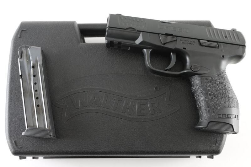 Made in Germany, the Creed offers a reinforced polymer frame, non-slip grip texturing and a pre-cocked double-action trigger system and a bobbed hammer that ensure a no-snag draw from a concealment. All metal components are treated with a corrosion and abrasion resistant TENIFER coating, providing a matte black hardened surface. It has an ambidextrous magazine release and low profile steel 3-dot sights. Add in a MIL-STD-1913 Picatinny rail for mounting a light or laser and this is a good choice for EDC. It has front and rear cocking serrations on the slide. It comes with the original factory hard case, owners manual, cable lock and (2) 16 round magazines. The bore is great. This gun looks new. Condition: NRA Excellent+