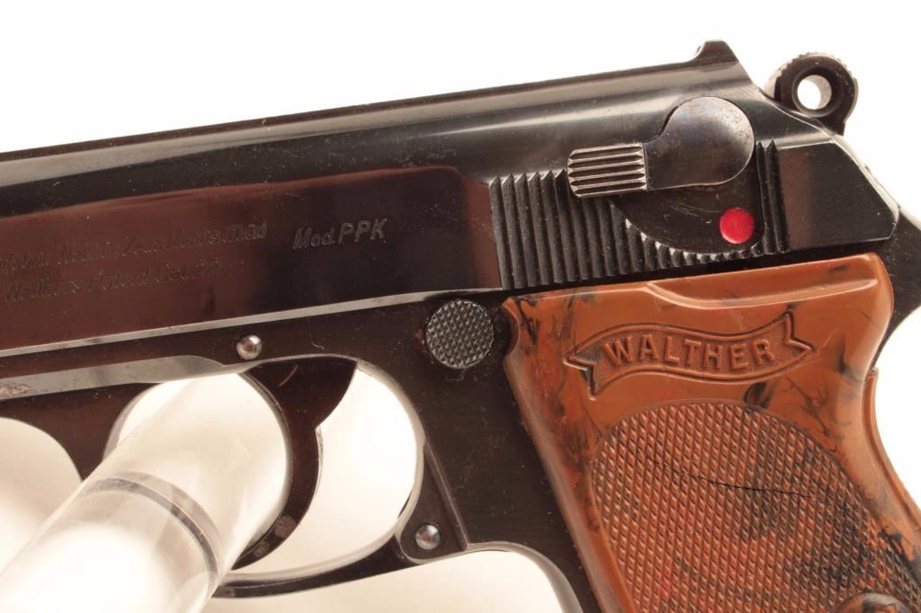 Walther pre-war crown “N” Commercial Model PPK semi-automatic pistol, .22 caliber, S/N 921554, approximately 95-98% finish, slight cracks to original grips; near fine overall. (C&R). Est.: $800-$1,600.