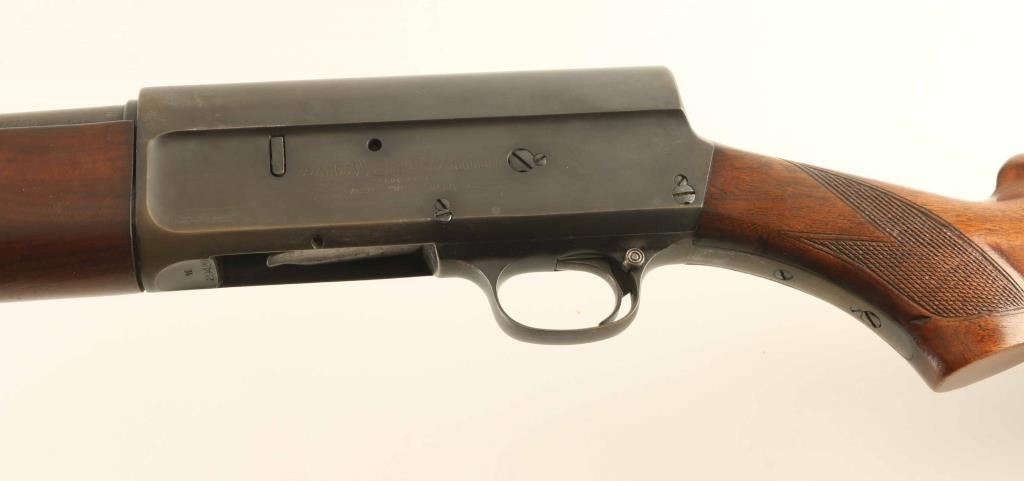 Semiautomatic shotgun features blued finish, checkered wood forend, wood butt with checkered wrist & curved grip, flat plastic buttplate, 28" plain barrel, steel front bead, fixed FULL choke, manual safety. Bore is dirty, appears to be very good condition. Retains 75% blue with scratches & rub marks on barrel, thinning of finish or bare metal on most edges, turning to brownish color in places. Stock is near excellent with some shallow small dents. Condition is NRA Very Good + *** Modern Firearm ***