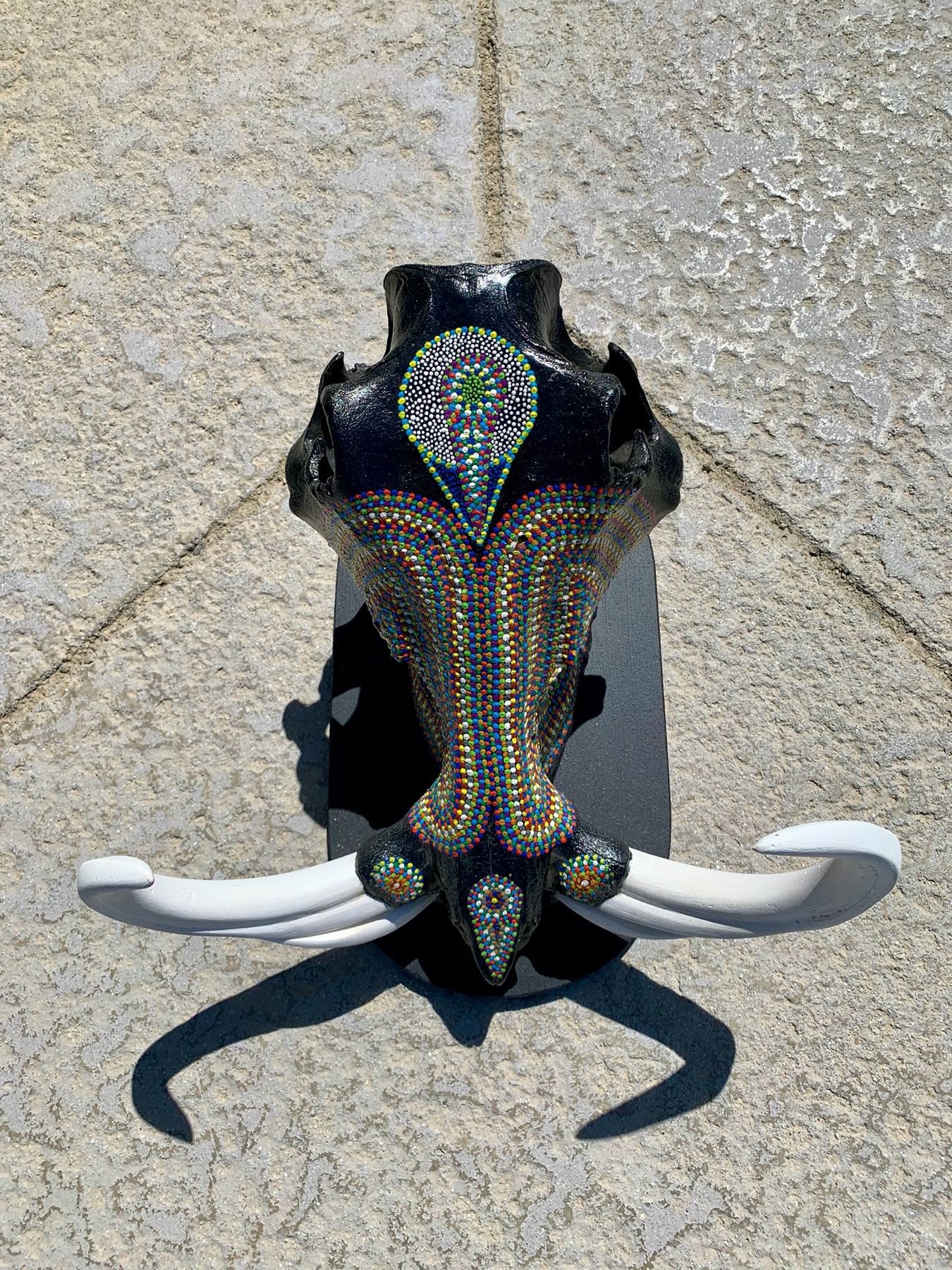 In addition, the taxidermy studio works with a local women’s collective of artisans to paint and hand craft each skull is a distinct and unique fashion. This skull is truly a work of art. Donation from a Golden Gate Chapter Member.