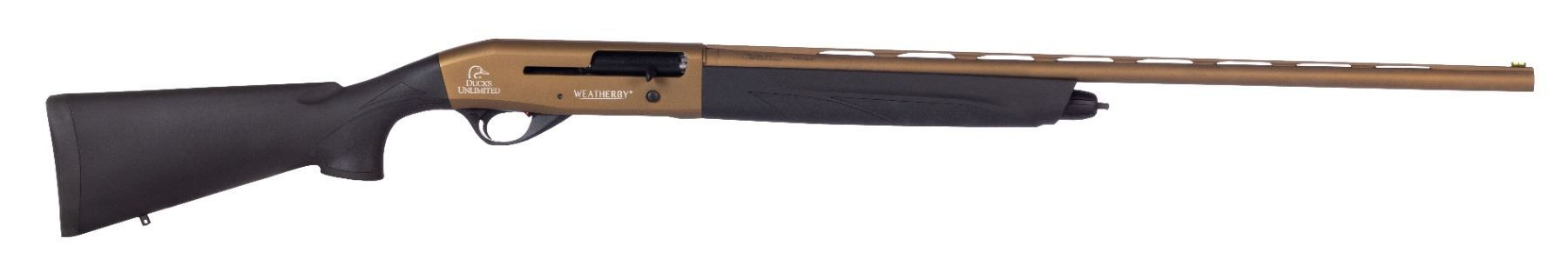 The Weatherby Element is a finely crafted 20-gauge semi-automatic shotgun designed to excel in both hunting and shooting sports. Its 3" chamber allows for versatile ammunition options, while the 28" barrel provides a balanced feel and controlled shot spread. The shotgun features a modern aesthetic with a Burnt Bronze Cerakote finish on the receiver and barrel, complemented by a black polymer stock and forend for durability and lightweight handling. Notably, the Ducks Unlimited logo on the receiver showcases its commitment to wetlands and waterfowl conservation. With an included gun lock for added safety, the Weatherby Element is an ideal choice for those seeking reliable performance and a touch of distinctive style in their shooting endeavors.