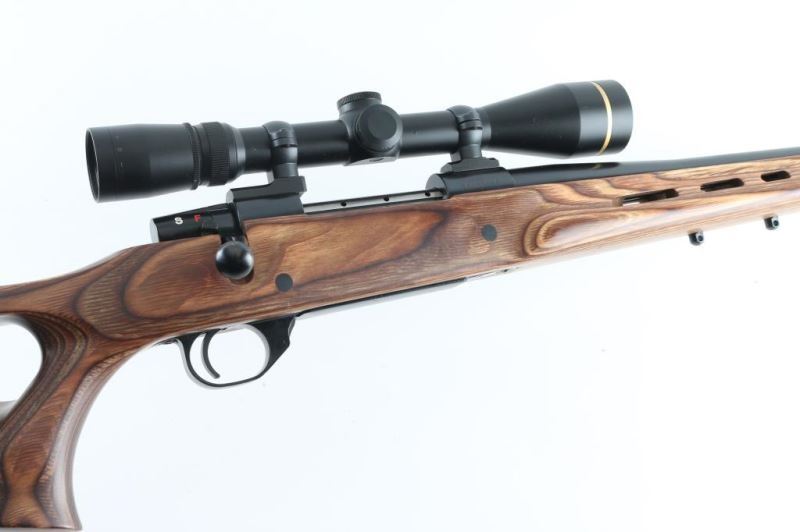 Made in Japan fo Weatherby, Paso Robles, CA. Bolt action rifle features blued finish, brown laminate thumbhole stock with ventilated forend, solid rubber butt pad, sling studs, 24" barrel, no metallic sights, two piece Leupold base & rings, hinged floorplate, manual safety. Bore is very good condition. Retains 98% dark bluing, with handling marks & edge losses. Stock is excellent condition. Mounts a near new condition Leupold VX-III 4.5-14x40mm scope with clear view. Condition is NRA Excellent - like new *** Modern Firearm ***