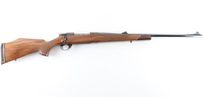 Rifle. Bolt-Action. "Deluxe" model. 3-rd internal magazine. Cold-hammer forged 24" round tapered barrel with ramped post/bead front, and flip/notch rear sights. High-polish blued finish. Monte-Carlo AA-grade walnut stock, with high gloss finish and fine line checkering, Vented rubber recoil pad. Rosewood fore end and pistol grip caps. Sling swivel studs. Receiver is drilled/tapped for optics. No screws as it had a scope mounted on it, with feint outlines of the scope bases. Bore appears excellent/bright, but a little dirty. Action is smooth/tight. Blued finish is about 98%. Wood is good with some minor scratches/dings. NRA Condition-Very Good. Modern Firearm.