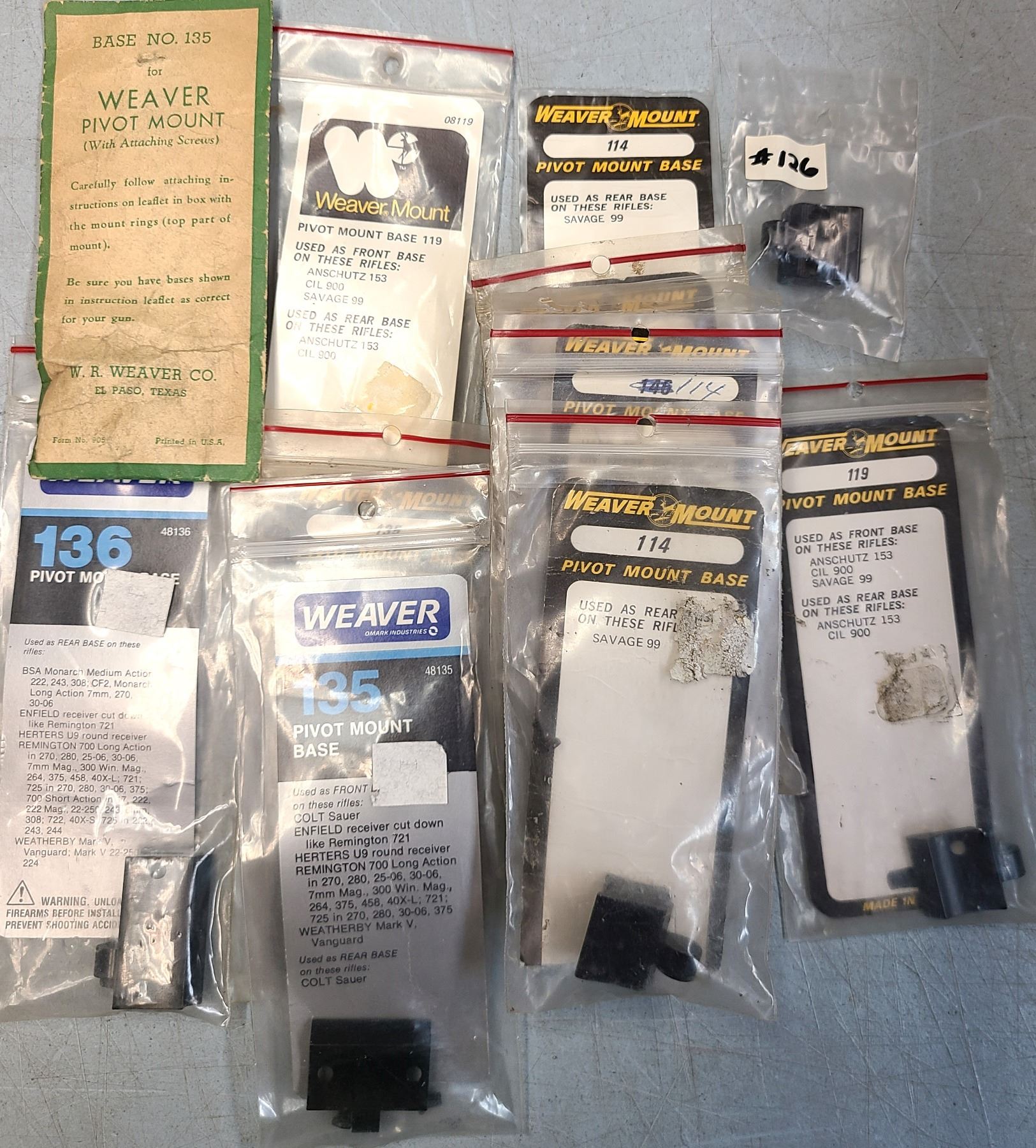 Weaver No 114, 119, 126, 135 & 136 Scope Bases - NEW
