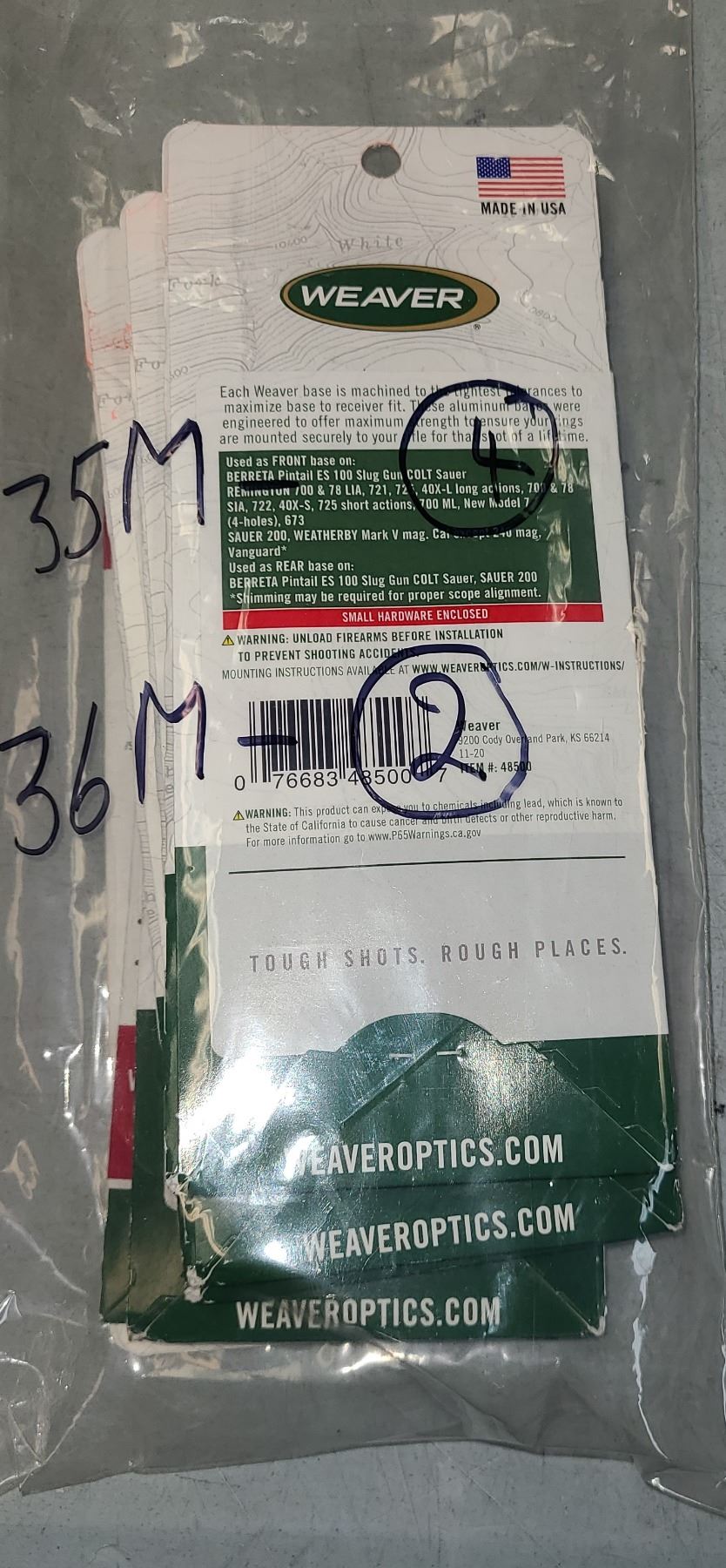 Weaver No 35M & 36M Scope Bases as Shown - 6 pc - NEW
