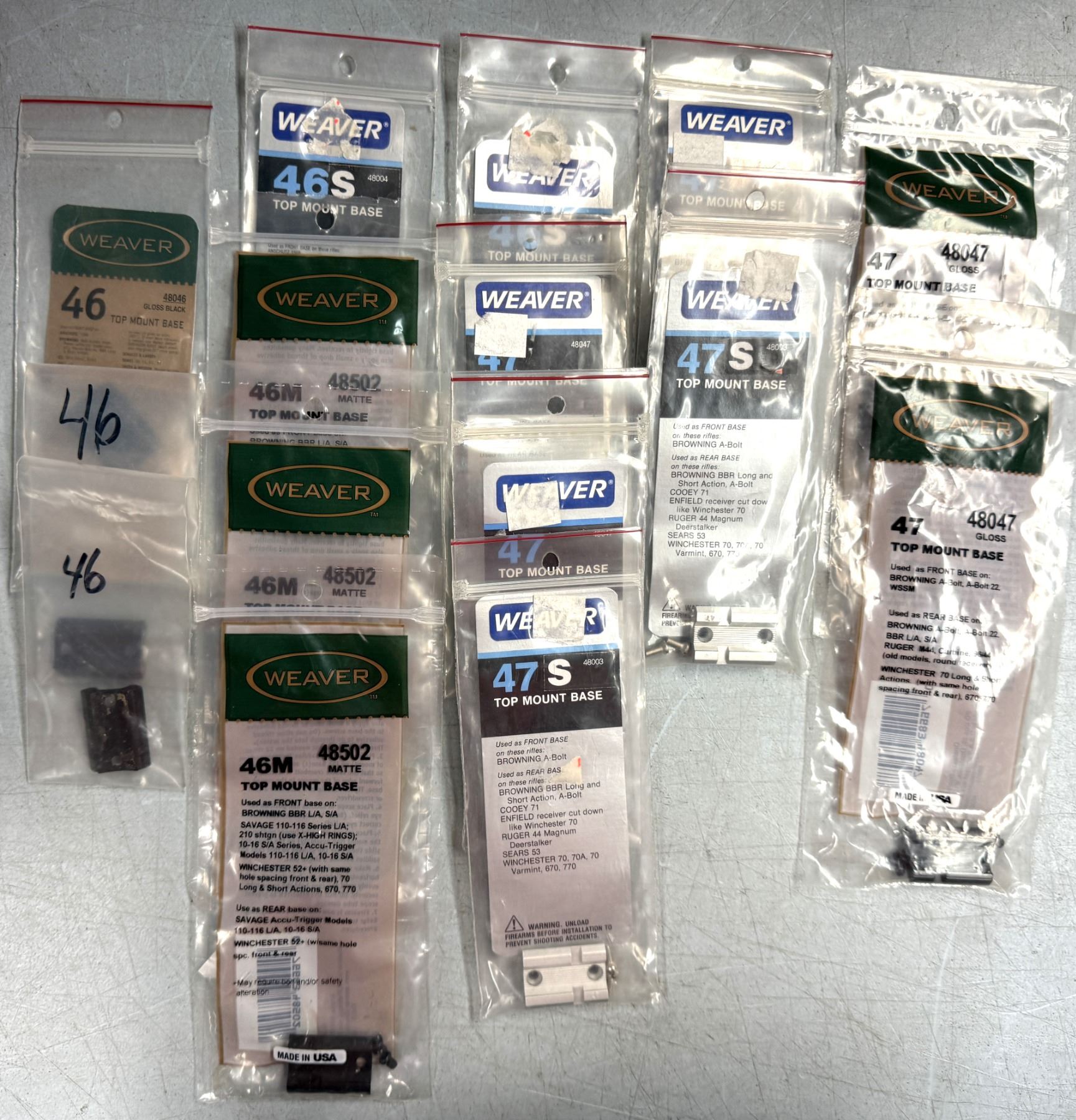 Weaver No 46, 46S, 47 & 47S Scope Bases as Shown - 15pc - NEW