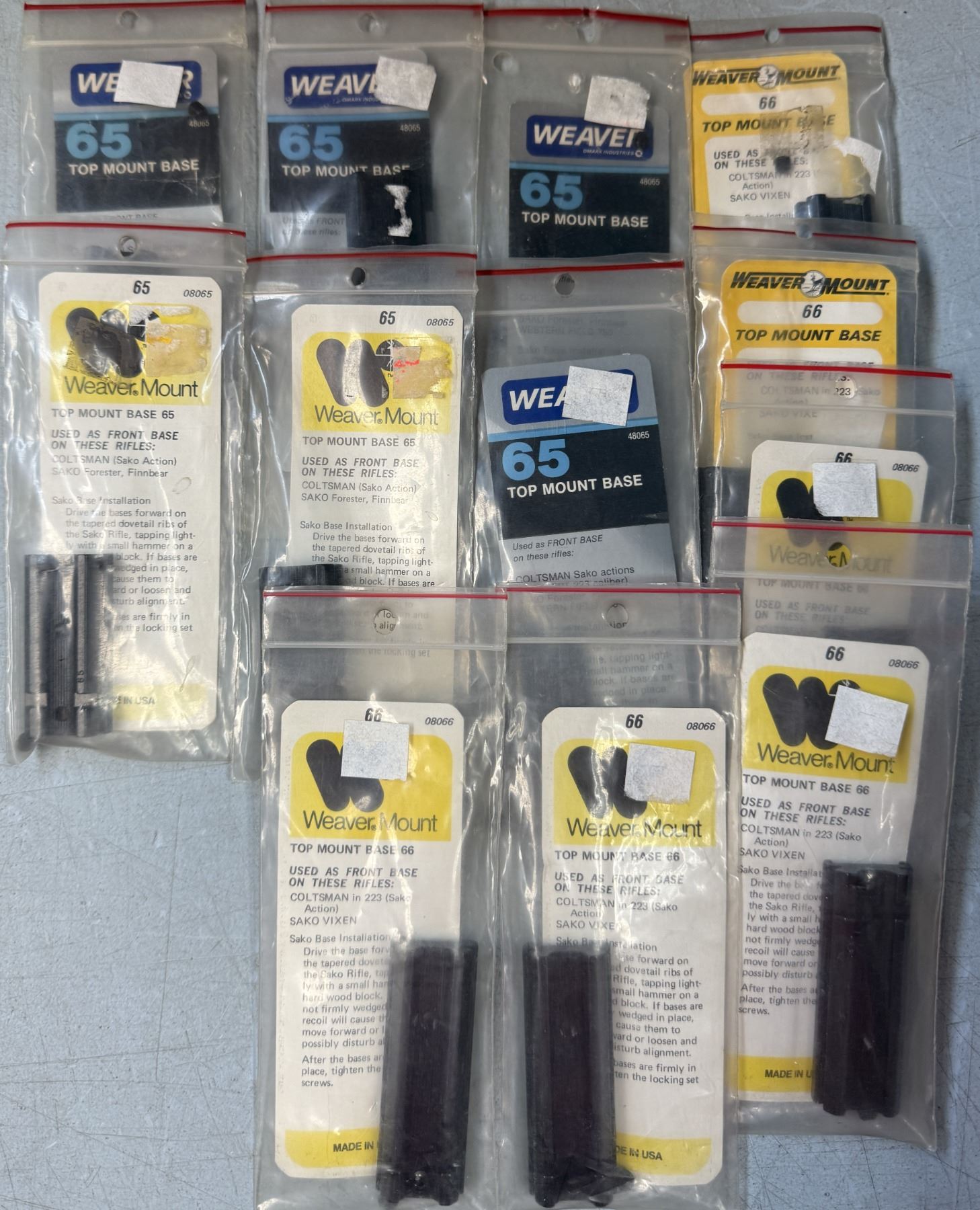 Weaver No 65 & 66 Scope Bases as Shown - 12 pc - NEW