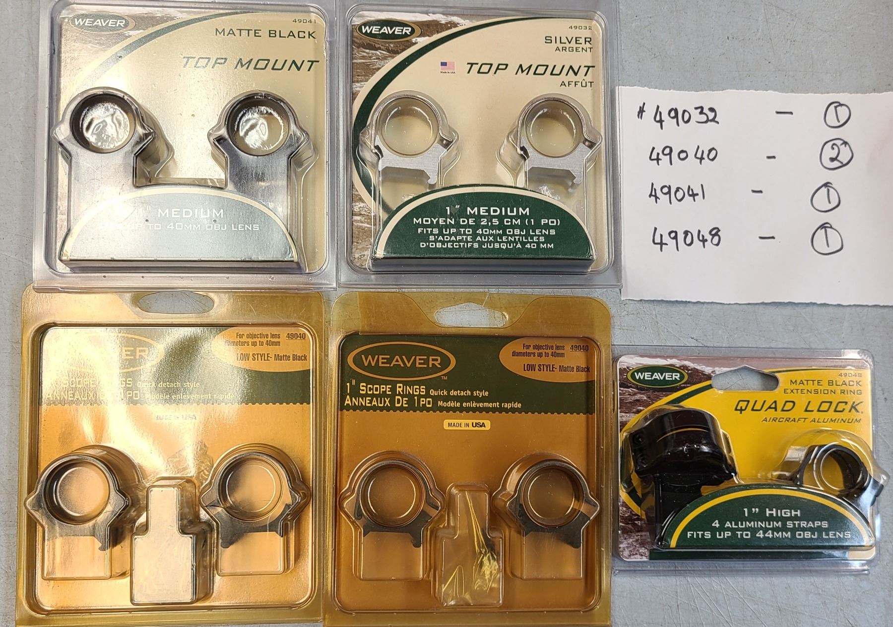 Weaver Scope Rings 1 inch - 5 pc Lot - NEW