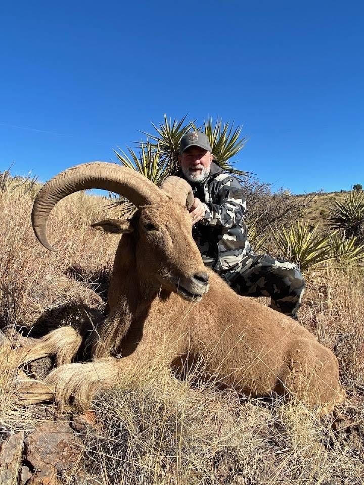 Our success rate is 100% for taking large Aoudad and our percentage of trophy-sized rams is unsurpassed by any other outfitter in the region. The populations and trophy sizes of our Aoudads have provided well-documented success for our hunters in fulfilling their dreams of a challenging free-range experience and trophy Aoudad opportunities.