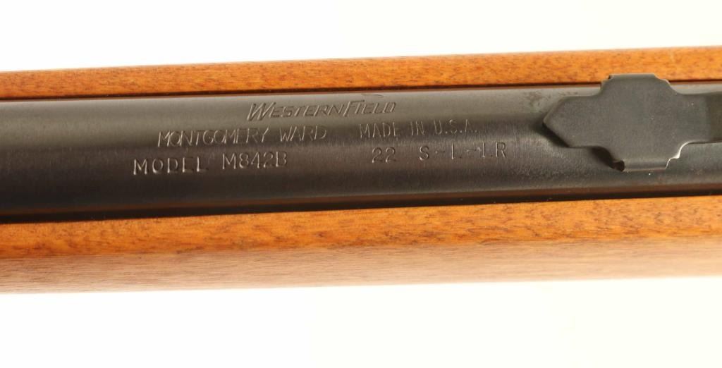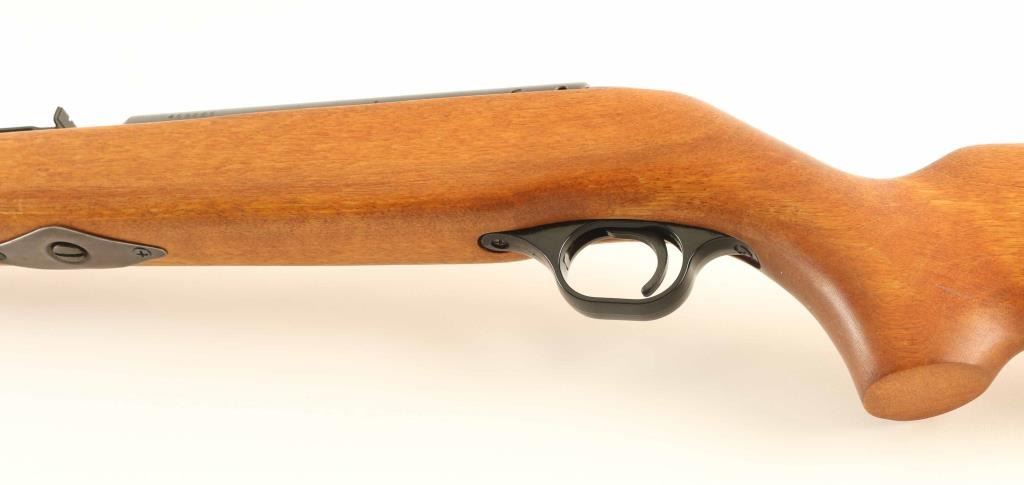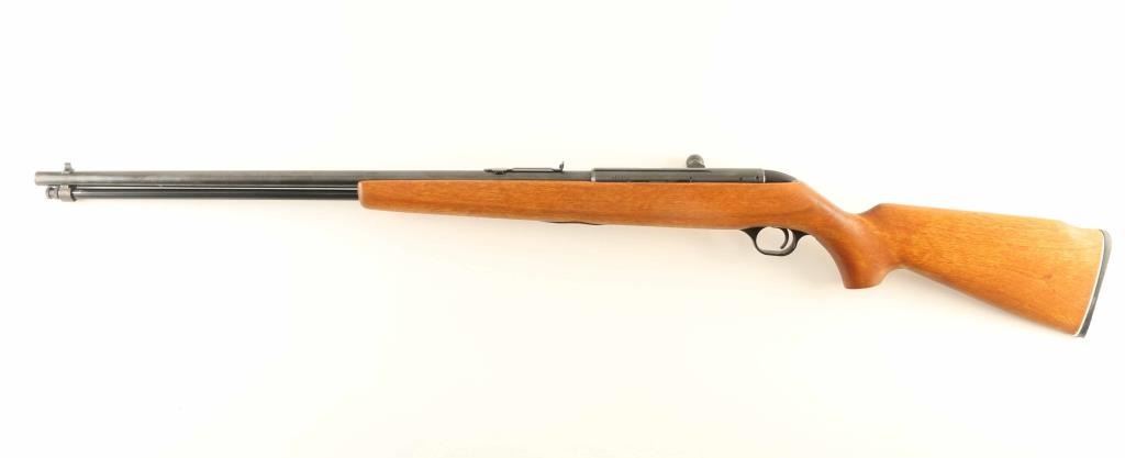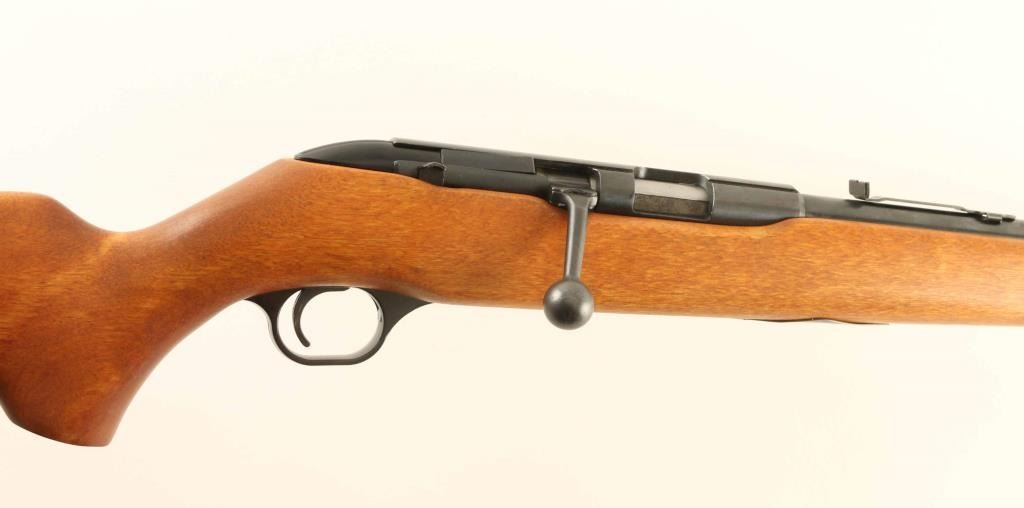 Bolt action rimfire rifle features 22" barrel, full length tube magazine under barrel, adjustable sights, manual safety. Bore is very good condition. Metal retains 85% blued finish with scrapes, especially to magazine outer tube, and thinning where handled. Stock is very good condition with few signs of use or handling. Condition is NRA Very Good *** Modern Firearm ***