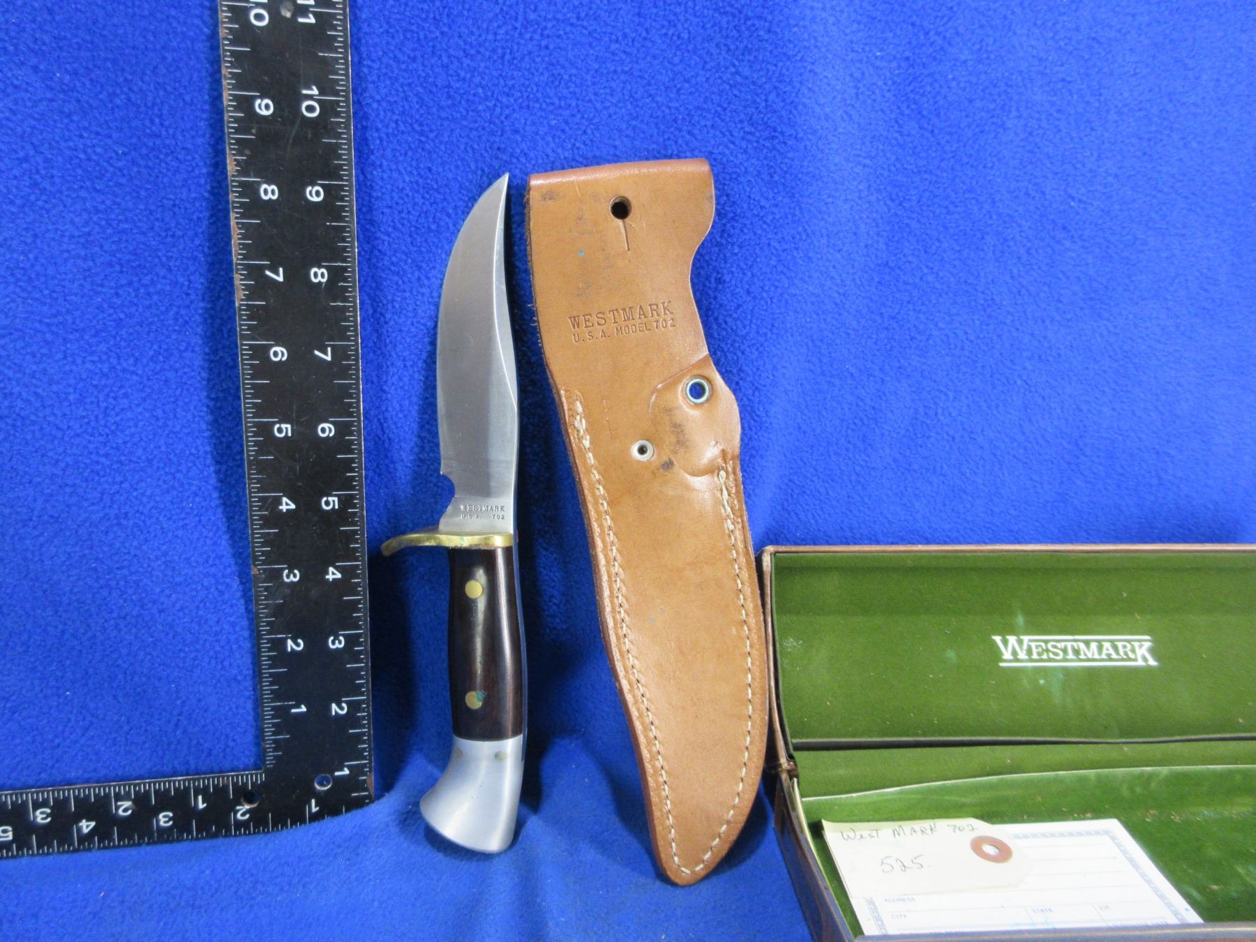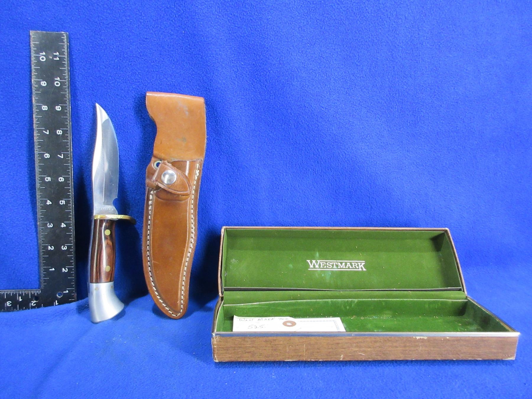 Westmark Model 702 Fixed Blade Knife # 14978 with Leather Sheath and Original Box - 5" Blade, 9" Total Length
