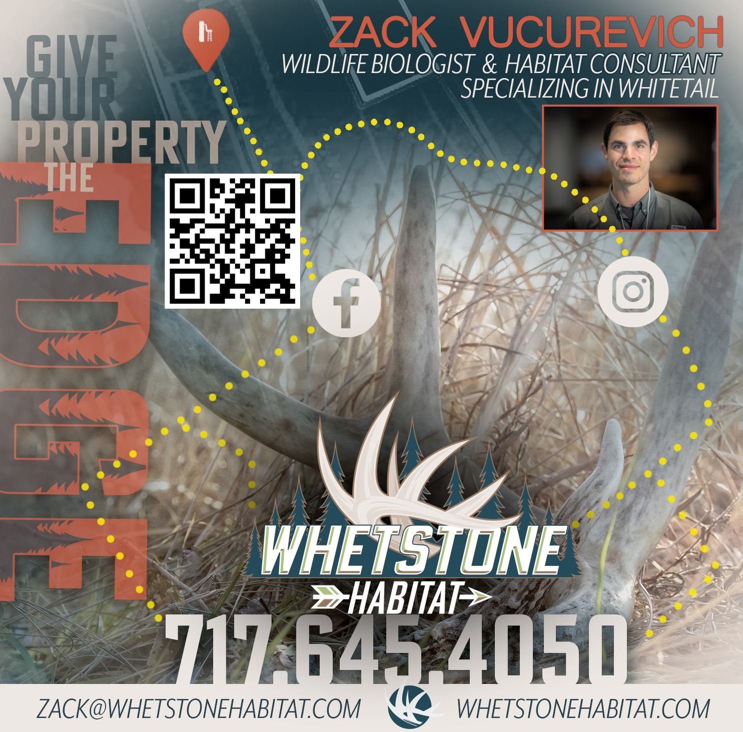This is your opportunity to get a wildlife biologist on your property to devise a one-of-a-kind Habitat Management Plan! WHETSTONE HABITAT specializes in working with landowners to develop and implement management practices that are more sustainable and beneficial for your native wildlife and plant communities. With a degree in Wildlife and Fisheries Management, an NDA Level 2 Deer Steward certificate, and a keen understanding of deer biology and behavior, Zack understands how to fit the pieces of the puzzle together to get the most out of your lands hunting potential!