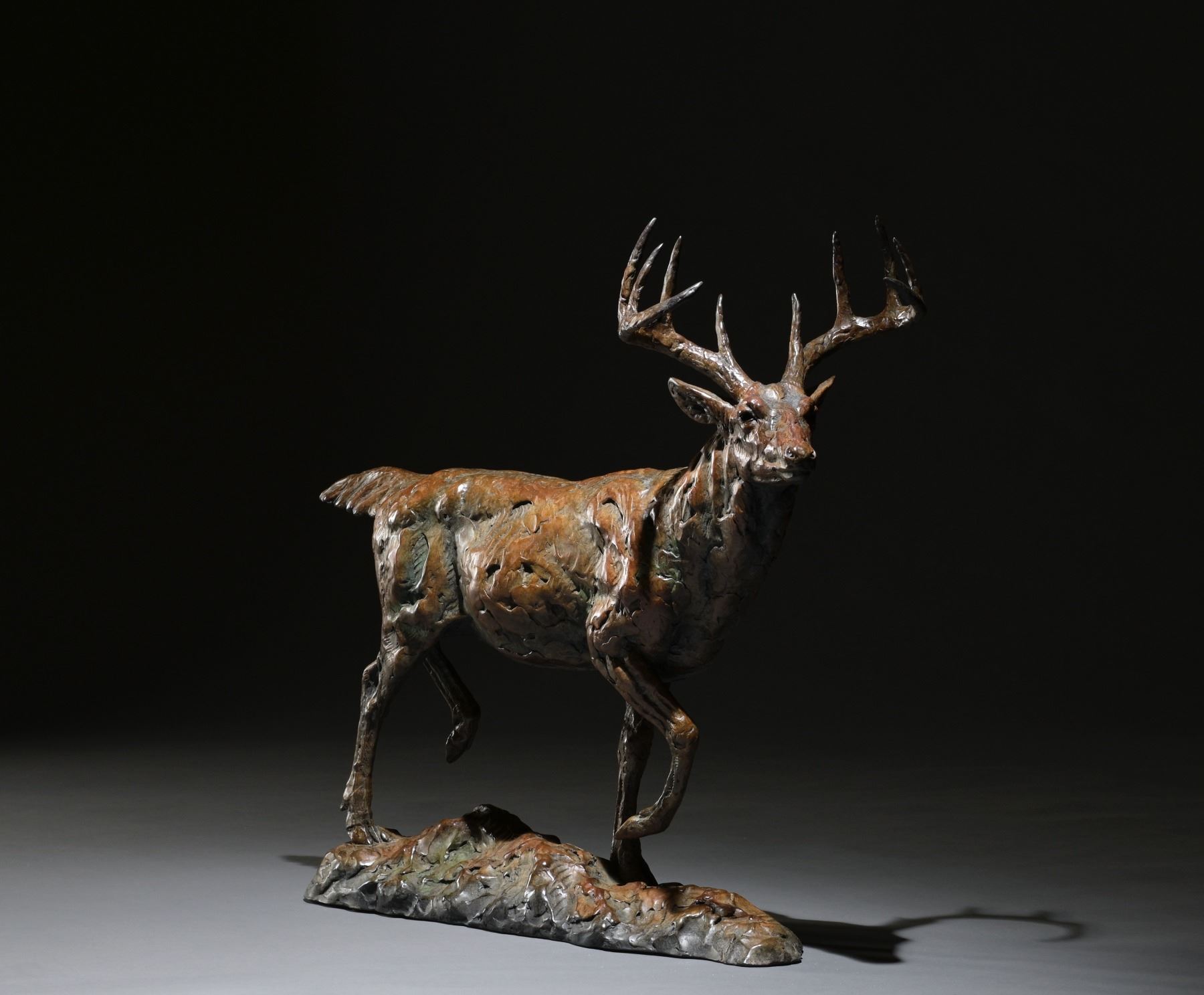 Mick Doellinger has generously donated this Whitetail deer bronze sculpture that would be at home in any trophy room, office, or study. Mick has been sculpting for more than 40 years, and he strives to capture “the essence” of the animal in each of his sculptures. “In the Fall” measures 20.5” tall by 22.5” in length, with a width of 8.5”and this limited run bronze is #21 of 25. WTSCI would like to thank Mick and Katrina Doellinger for this 100% donation.