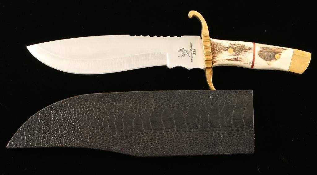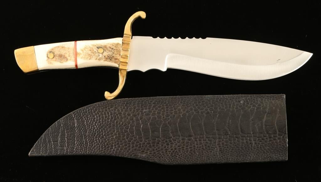 Measures 12" overall with a 6" blade. Includes a leather sheath