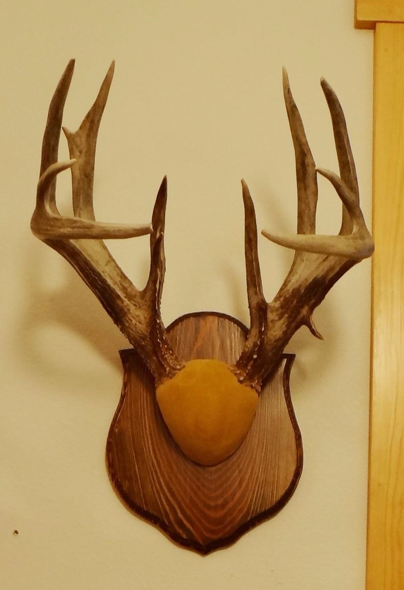 Whitetail Deer plaque mounted antlers, 7x7, non-typical, 15"w, 14"h