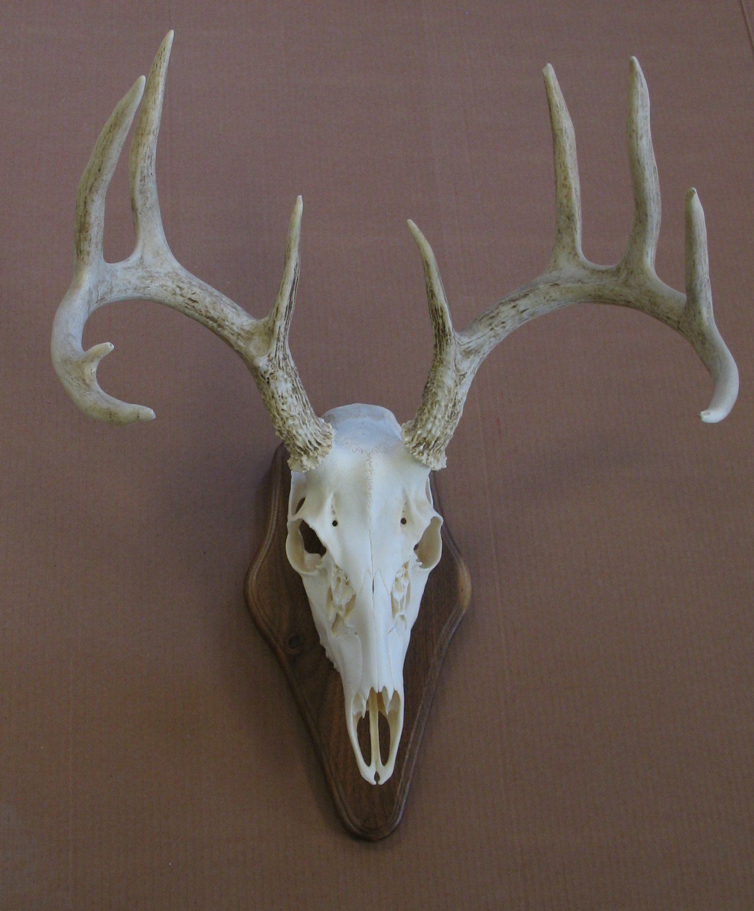 Whitetail or Mule deer skull cleaning (using Dermestid Beetles) & mounted on walnut plaque taxidermy gift certificate.