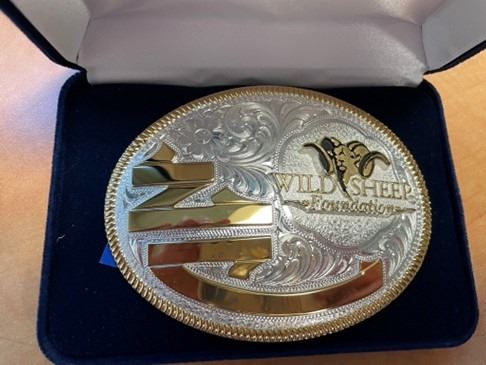 Wild Sheep Foundation belt buckle made by Montana Silversmiths.