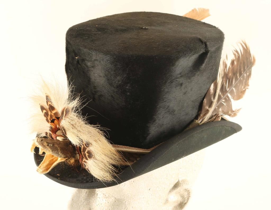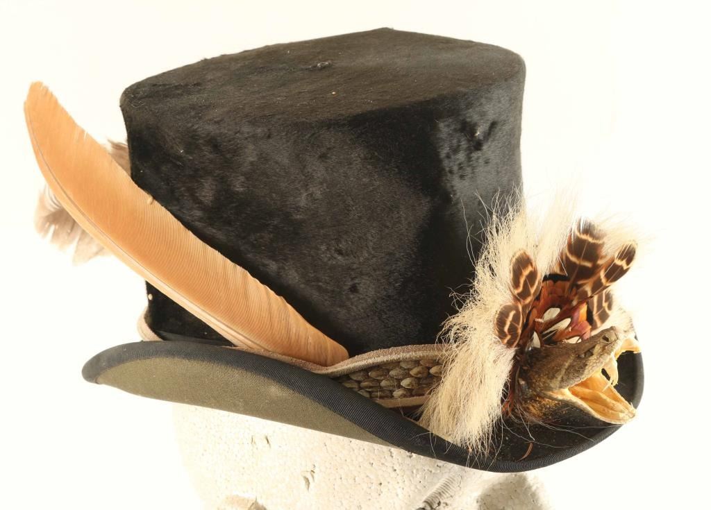 TW Hobson and Co beaver skin construction with a rattlesnake hatband with feathers.