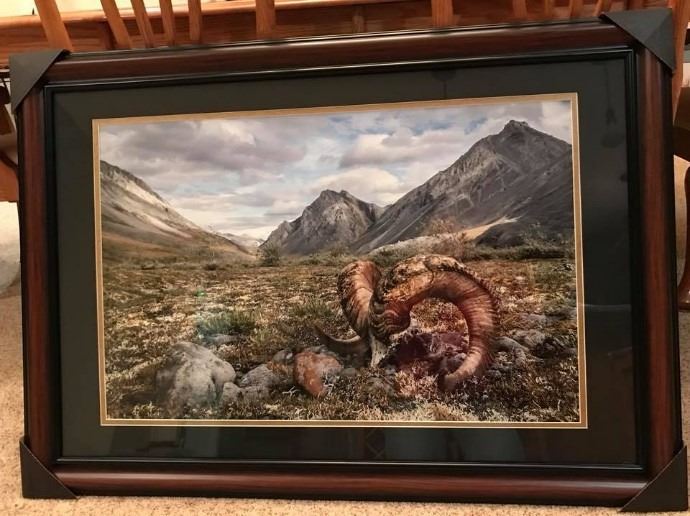 Photograph: This photograph by SCI Alaska Board Member Ruth Cusack is “The Final Tribute” to the untold story of the life and death of a magnificent Dall Sheep ram. The photograph was taken in the Brooks Range, the northernmost mountain range in Alaska. It captures the weathered skull and horns of a deceased ram, framed against the breathtaking and picturesque mountains of this sheep hunting paradise. Ruth and her husband Louis are a remote wilderness hunting couple. They have hunted and fished in some of the most remote and pristine places throughout the world. We thank Ruth for her donation.