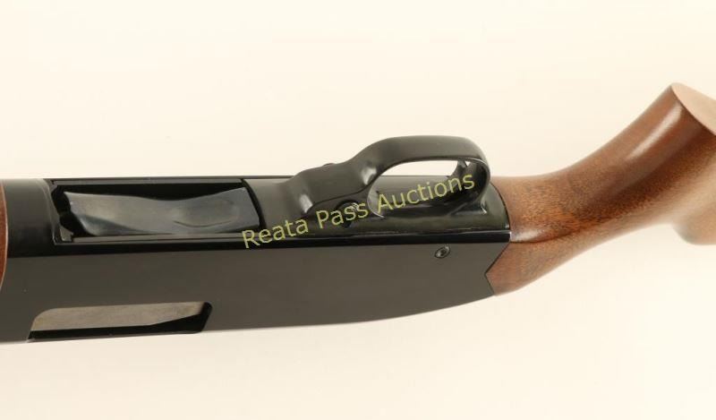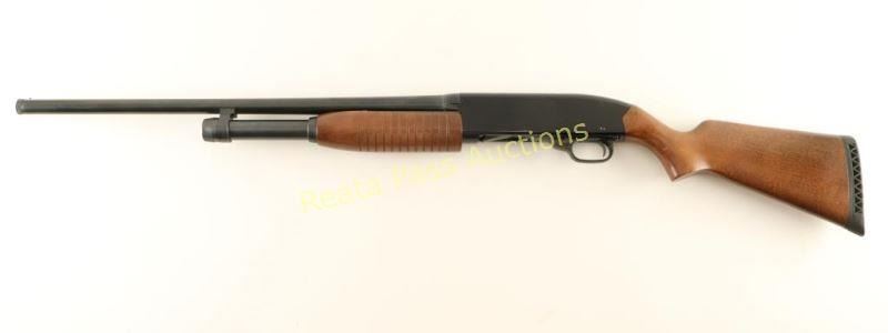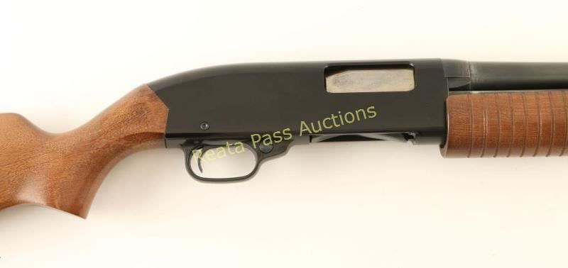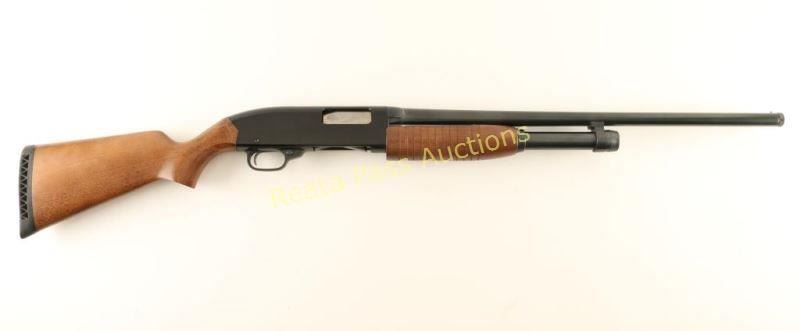 'Ranger' American made slide action youth shotgun chambered for 2 3/4" & 3" 20 gauge shells. Features a blued 22.5" barrel with removable improved cylinder choke, brass bead front sight, half length tube magazine, black finished receiver with serrated top strap, push button safety, beveled trigger, grooved hardwood slide handle and pistol grip shoulder stock with factory recoil pad & 12 3/4" LOP. Shotgun exhibits approximately 92% of it's original finish showing light slide wear on the magazine tube/receiver, a ring of light rust on the barrel 3/4" up from the receiver and an area of finish loss from attempting to remove the rust. Action is smooth, bore is pristine and wood stocks are near fine with minimal blemishes. Condition is very good. ***Modern Firearm***