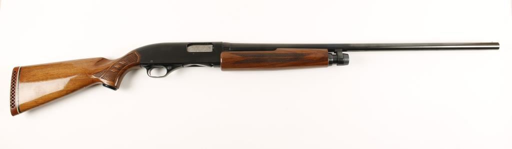 Blued/anodized pump action shotgun with a 28" barrel. Metal finish is very good with the exception of the initials "A.E.H." that have been scratched into the receiver. The stock and forend are wood with stamped checkering and the only damage is a ding on the belly of the butt stock. There is a Winchester recoil pad that is still soft and in good condition. Bore is immaculate. Action is good. Condition is very good. *Modern Firearm*