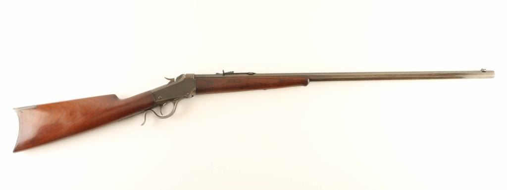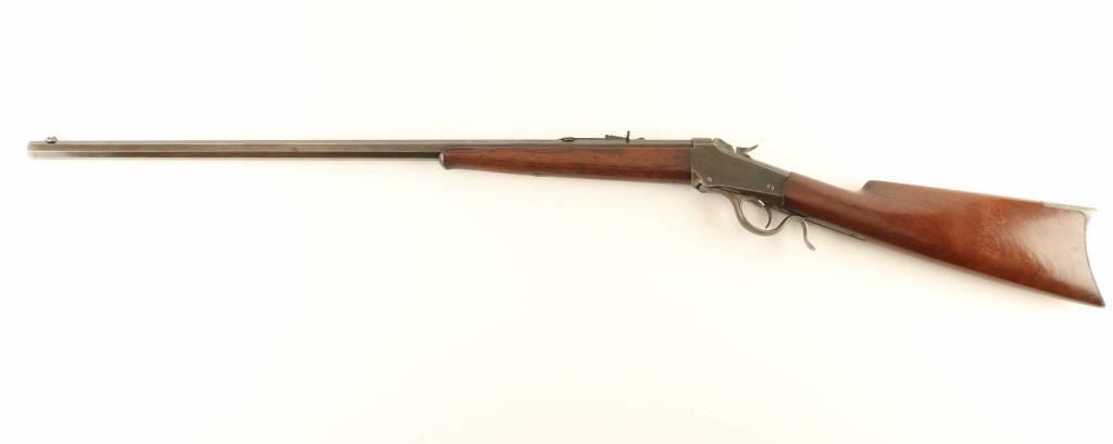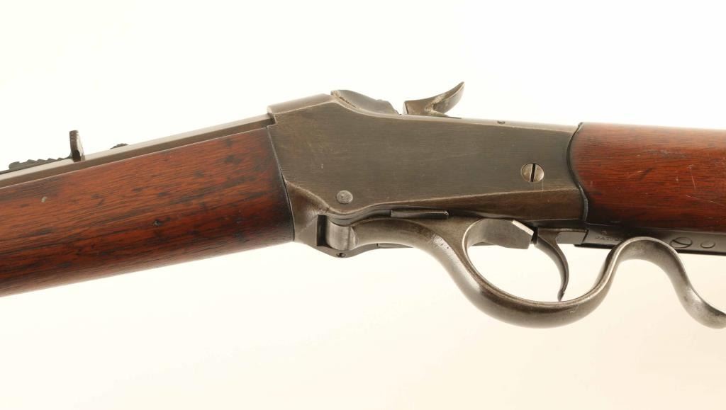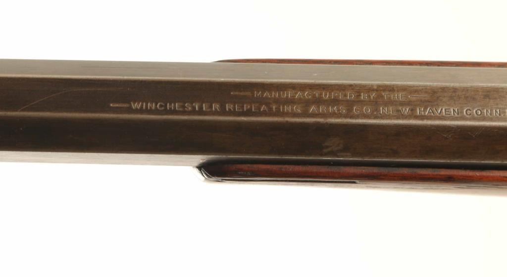 Manufactured circa 1898 with a 28” octagon #1 marked barrel. 30%-50% toning blue drifting to a gray brown patina. Beech type folding globe front sight. The stocks are good with hairline crack at the left rear of tang (Tight and solid). The bore is fair to good with slightly rough area at the breech extending 5”-6” down towards the muzzle. Desirable in .32-20. Condition is NRA Very Good ***Antique Firearm***