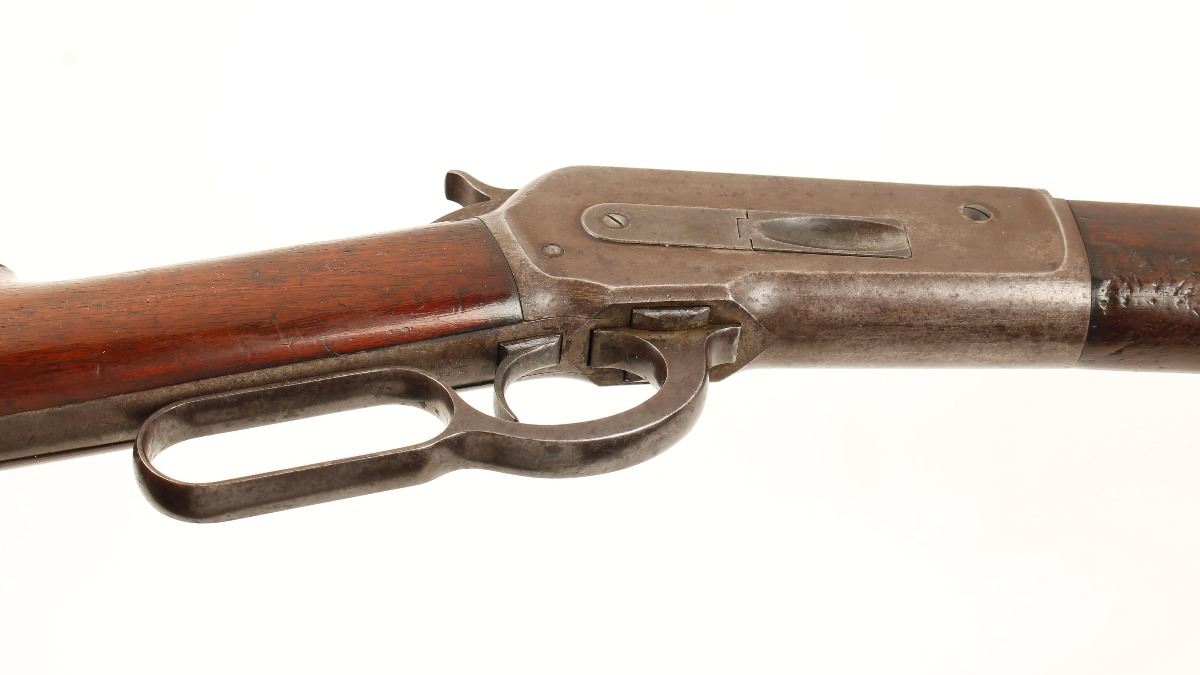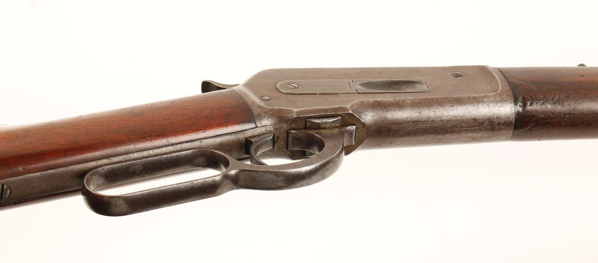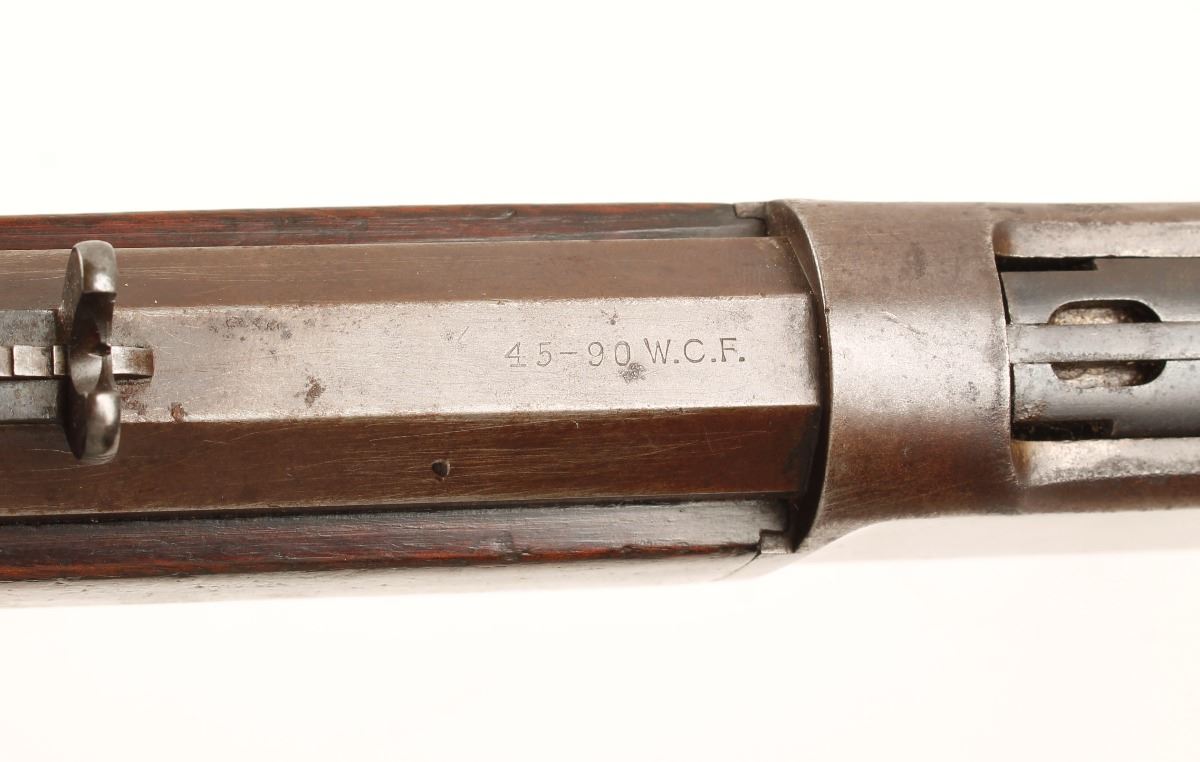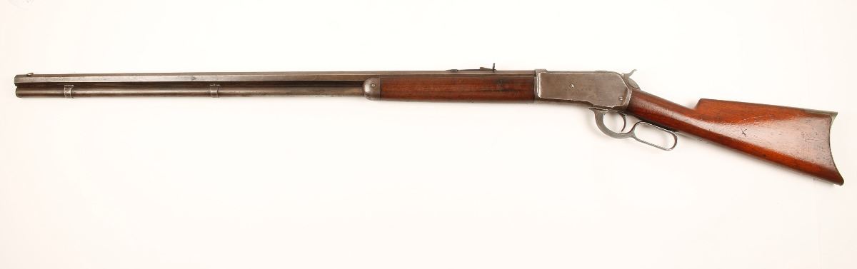 Extremely rare factory long-barreled 1886 Winchester with factory letter, manufactured in 1988. Our research indicates there were only 35 of the 34" made. Features a blued finish, 34" octagonal barrel, full magazine tube, German silver blade front, semi-buckhorn rear sights, fancy checkered hammer spur, crescent buttplate, factory installed extra ferrule to support the magazine, and a revarnished straight grip shoulder stock and foregrip. Rifle shows a consistent brown/grey patina with areas of bright wear and original bluing in protected areas. Wood stock is excellent, bore is dark with good rifling and action is smooth. This rifle is very unique with all the features you would look for in a collector Winchester. Condition is very good as antique. ***Antique Firearm***