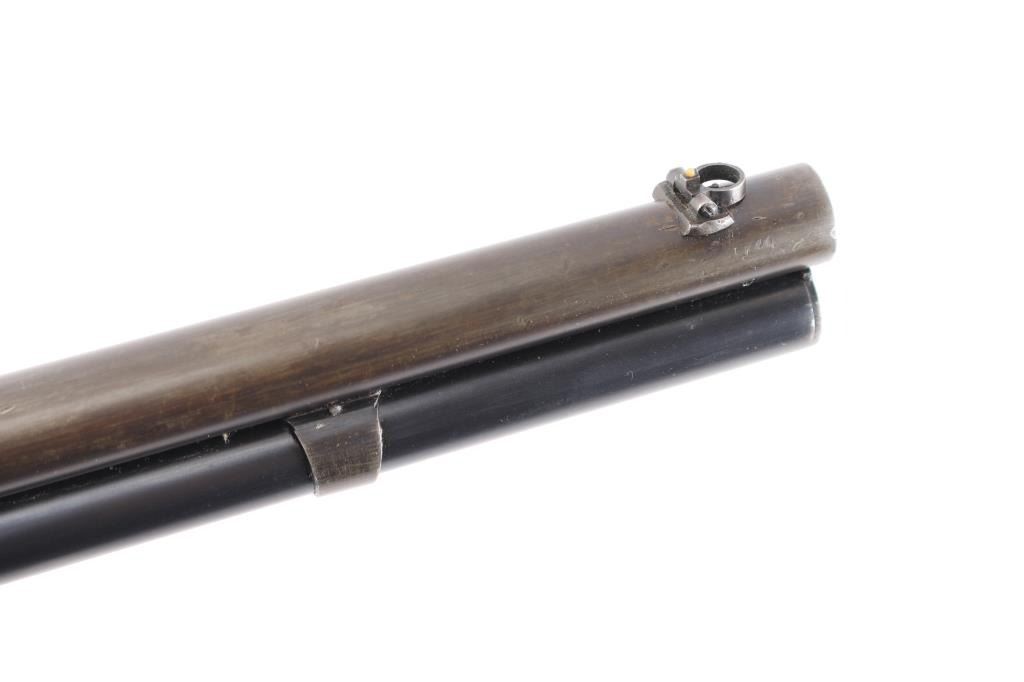 GOOD: Some minor replacement parts; metal smoothly rusted or lightly pitted in places, cleaned or re-blued; principal letters, numerals and design on metal legible; wood refinished, scratched bruised or minor cracks repaired; in good working order.