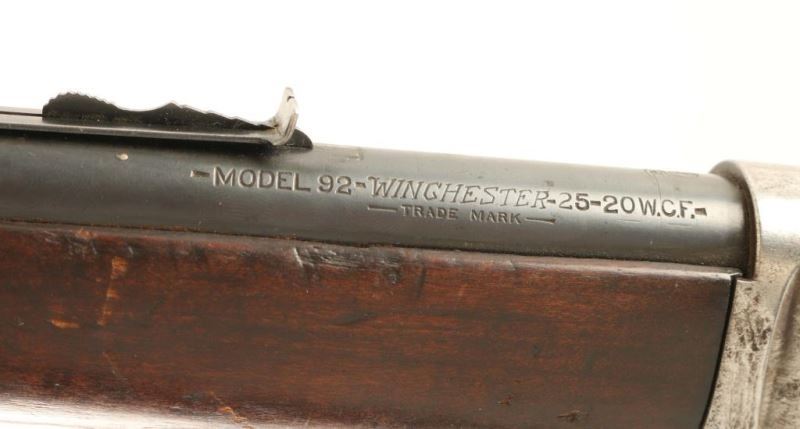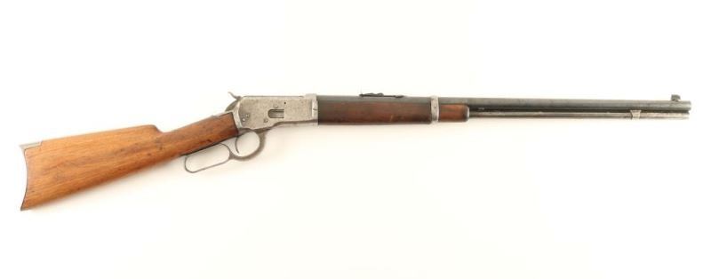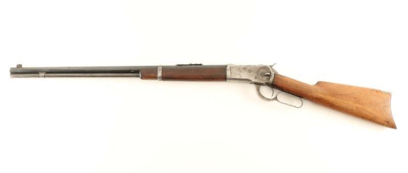 Interesting vintage lever action repeating rifle, circa 1909. 24 5/16" replacement "model 92" barrel, full-length tube magazine, Marble 45W blade front sight, adjustable rear sporting sight, provision for a saddle ring, carbine forend and rifle butt. The barrel retains most of it's original bluing with a considerable amount of pin prick pitting. The receiver is primarily in-the-white showing honest wear and a small amount of finish intact in the protected areas. Action is smooth, bore is near excellent with a half-ring of light pitting and wood stocks are near good. Condition is good. ***C&R Firearm***