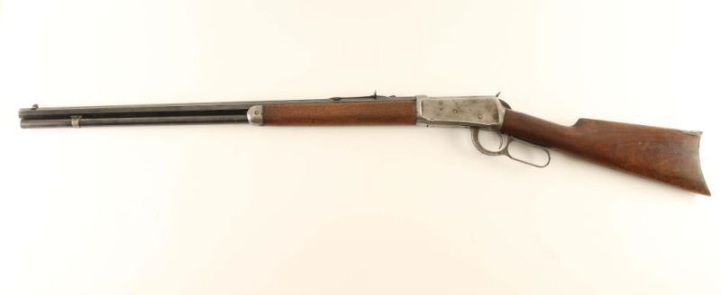Circa 1911. Blued finish, 26" octagon bbl, full length tube magazine, blade front sight with set screw, adjustable semi-buckhorn rear sight, smooth walnut stocks and crescent metal buttplate. The barrel & magazine tube retain approximately 60% of their blued finish showing edge wear, handling wear and scattered light surface rust. The receiver is in-the-white with a browning patina and some surface(primarily along the stock line). Markings are good, action is sound, bores is excellent and wood stocks are very good with a single small crack extending from the upper tang. Condition is good+. ***C&R Firearm***