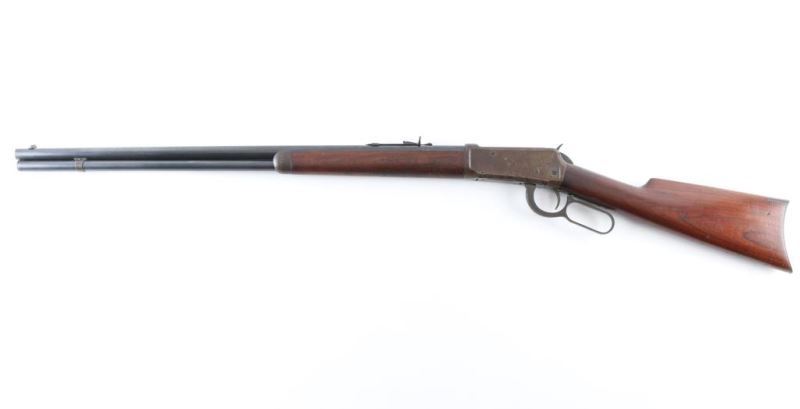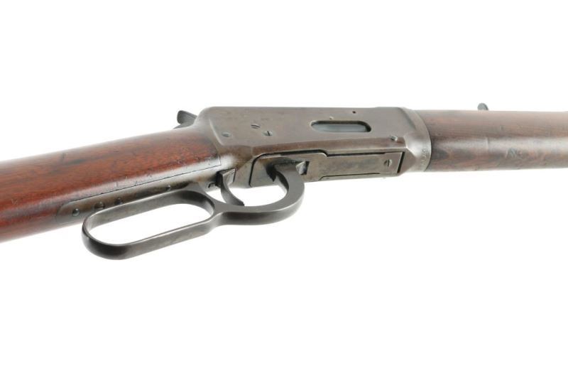 Lever action rifle manufactured circa 1913. Features 26" round barrel with full length mag, correct semi-buckhorn sights, crescent butt, smooth walnut forend & stock. Bore is good condition, bright with some frosting. Metal retains 75-85% original blue on the barrel and mag, some patina or pinprick pitting, frame drifted to brown patina. Wood is very good, some oil staining, very good fit to metal. Markings are good. Action is smooth. Condition is NRA Good++ *** C&R Firearm ***