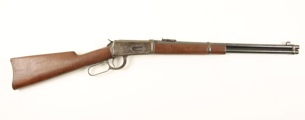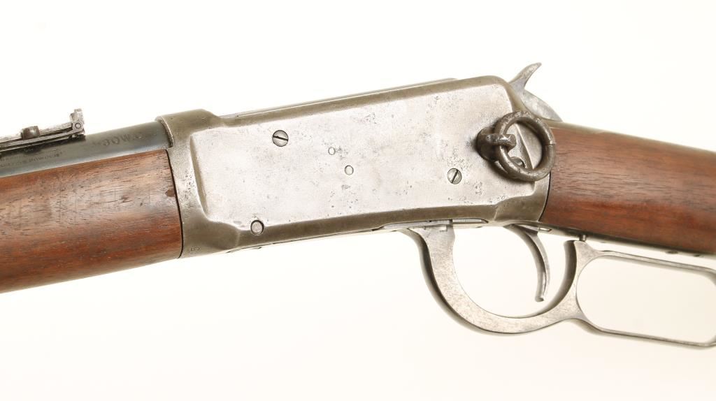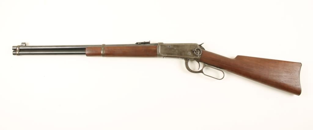Lever Action Saddle Ring Carbine, Blued Replacement Round Barrel 19", The action has heavy pitting, and stock appears to have been replaced. Condition Overall Fair due to pitting and replacements Modern Firearm*
