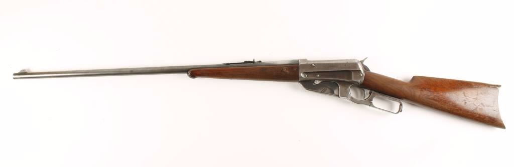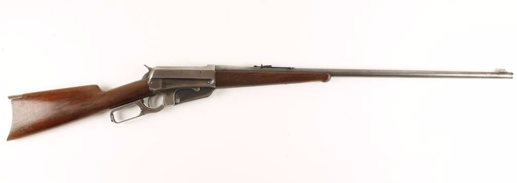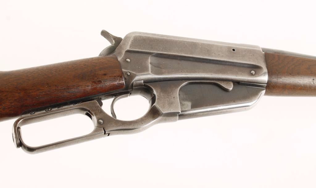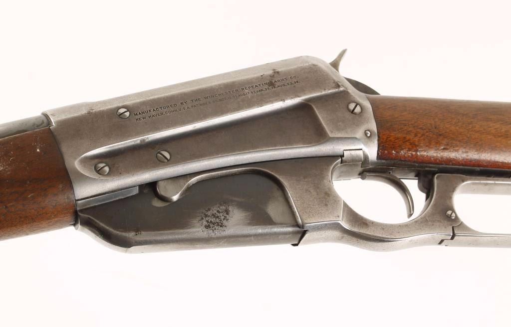 Magazine-fed lever action repeating rifle chambered in .30-40 Krag, circa 1902. Features a 27 7/8" tapered barrel, blade front sight, cut-down buckhorn rear adjustable sight, non-detachable box magazine, contoured receiver, checkered hammer spur, smooth trigger, schnabel walnut forend with ebony insert and straight grip shoulder stock with crescent metal buttplate. Finish on barrel is thinning blue creating a grey appearance with some dark oxidation near muzzle and bare metal near receiver. Contoured receiver shows 15% bluing and is grey in appearance. Box magazine shows 50% dull finish with a small patch of pitting on left side. Wood stocks are near fine with some remaining varnish and few scratches. Action is super smooth and bore is good. Condition is good to very good as vintage. ***C&R Firearm*** ***Modern Firearm***