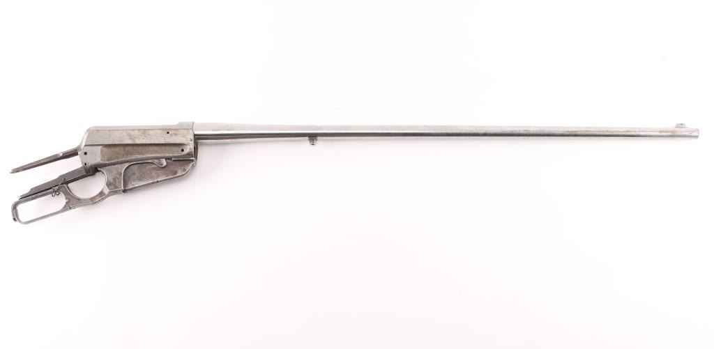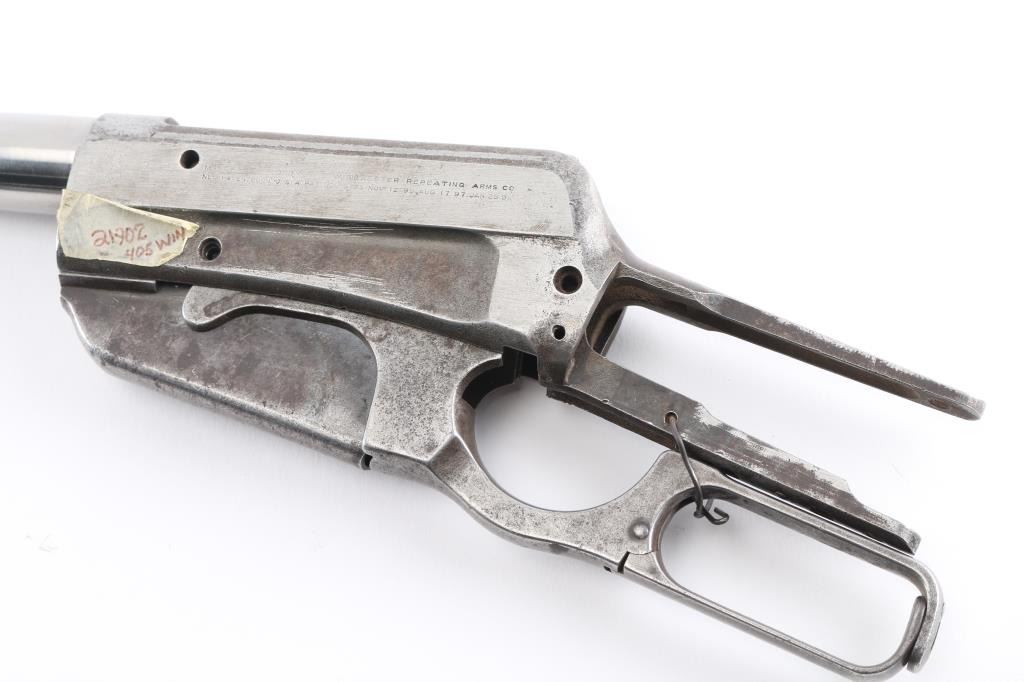 SN: 21902 1899 Vintage Winchester 1895 action with barrel, bolt, magazine and two-piece lever. The receiver flats have been semi-polished with the balance showing aged patina with some pitting. The .405 caliber barrel is unmarked and in the white. It measures approx. 28" and has provisions for sights & fore. Bore is very good/bright. Missing the screws including the internal screws.NRA Condition-Good. Modern Firearm.