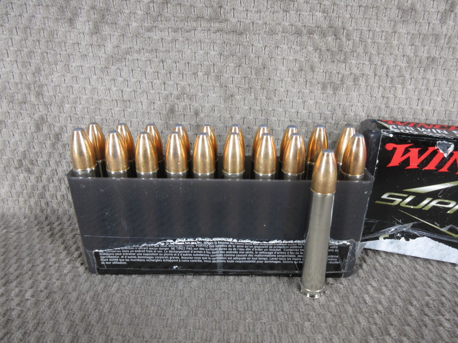Winchester 458 Win Mag Box of 20 Shells Opened - 500 GR. Nosler Partition