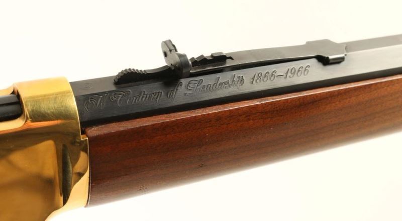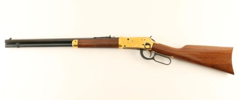 SN: 45319 Commemorative 'SRC', one of only 102,309 produced in 1966. Blued 20" octagon bbl, full length magazine tube, saddle ring, brass colored receiver, forend cap & buttplate, and smooth walnut stocks. The receiver is drilled & tapped for a side mount receiver sight. Approximately 97% bluing intact showing light handling marks on the blued surfaces & bass colored surfaces as well. Great action & bore. Wood stocks are fine. Includes the original cardboard box with correct label & no sleeve. Condition is near excellent in box. ***Modern Firearm***
