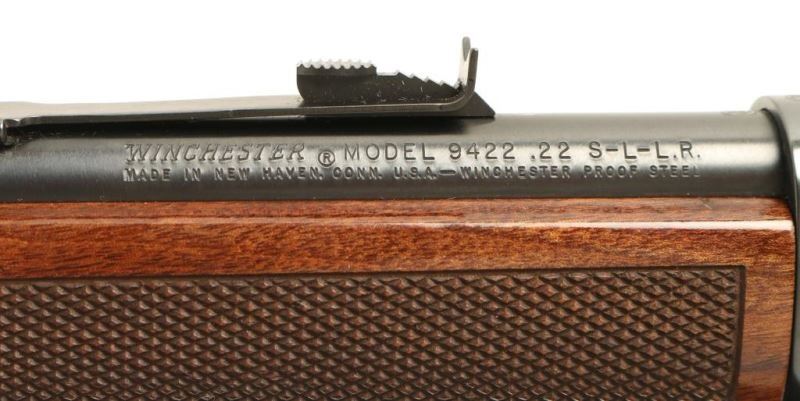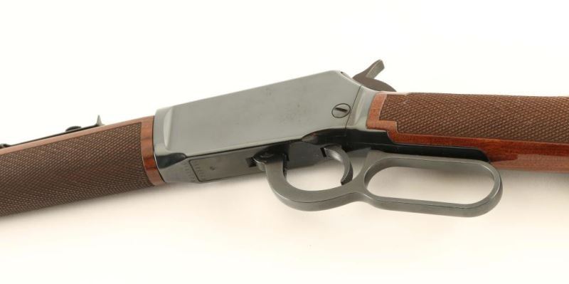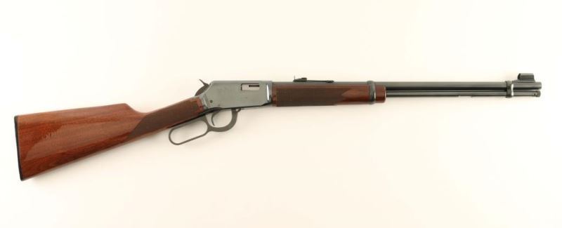 Desirable lever action repeating rifle chambered in .22 Short, Long or Long Rifle, circa 1975. Blued finish, 20.25" barrel, full length tube magazine, ramped & hooded blade front sight, adjustable rear sporting sight, integral scope rail cuts on the receiver, serrated trigger & hammer spur, and checkered high gloss walnut stocks. Approximately 98% bluing intact overall showing some light handling marks. Action is very smooth, bore is excellent and wood stocks are fine. Condition is excellent. ***Modern Firearm***