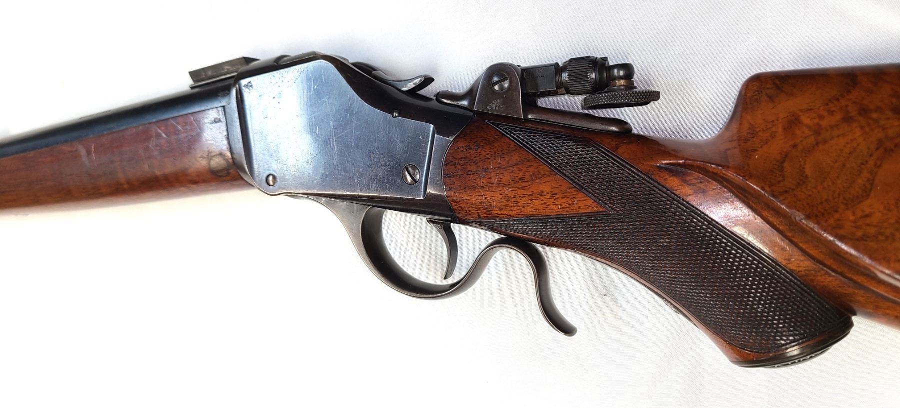 The Winchester Model 1885 is a single-shot rifle with a falling-block action. It was