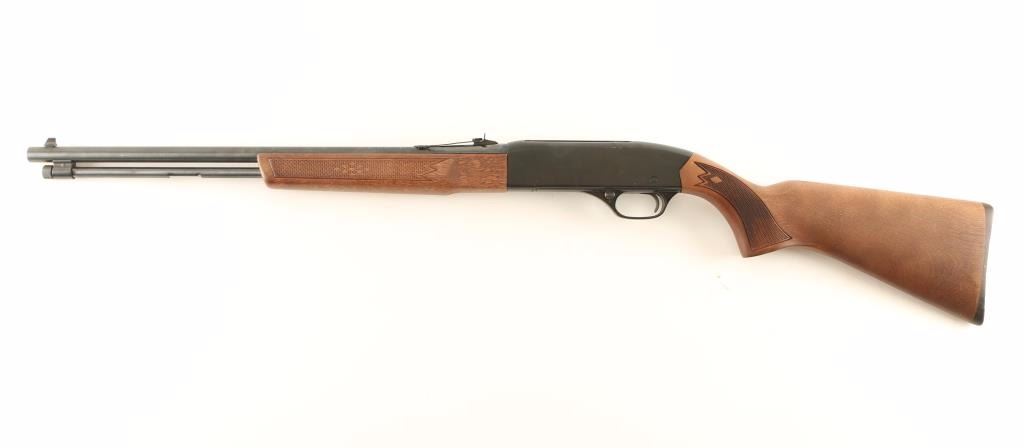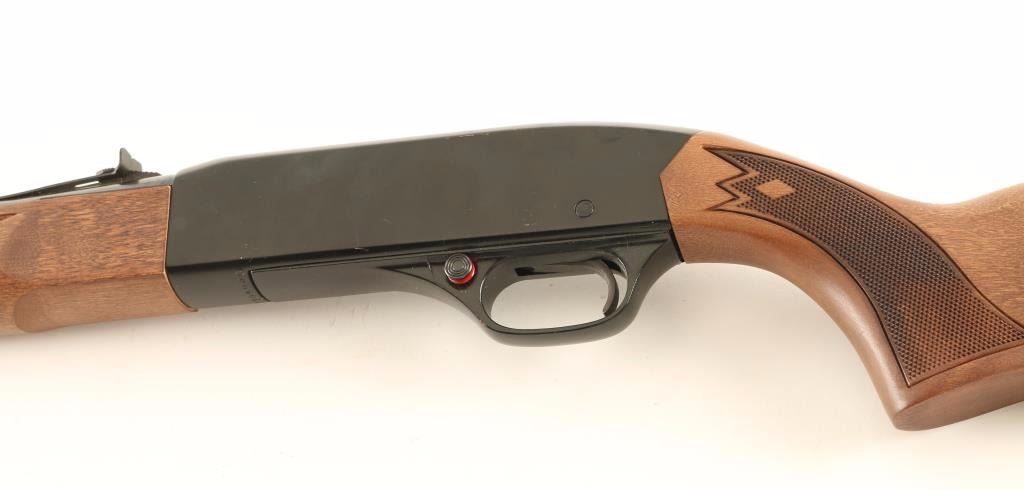 Tube fed semi-automatic sporting rifle chambered for .22 Long or Long Rifle, circa 1967-1980. Features a blued/black finish, 20.5" barrel, blade front sight, adjustable rear sporting sight, full-length tube magazine, push button safety, smooth trigger with beveled edges, alloy frame with integral scope rail cuts, checkered wood forend and pistol grip shoulder stock with factory buttplate. Rifle exhibits approximately 95% of it's original finish showing small scattered losses and handling marks. Action is sound, bore is excellent and wood stocks are fine. Condition is near excellent. ***Modern Firearm***