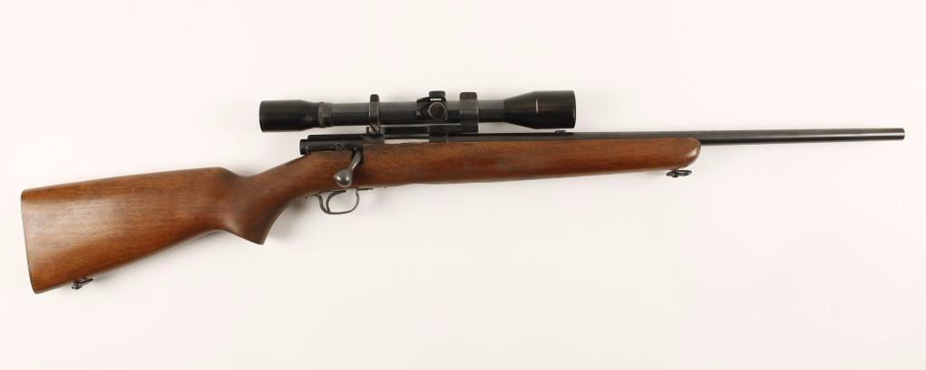 'Standard Grade' Magazine fed bolt action sporting rifle chambered in .22 Hornet, circa 1950's. Features a blued finish, 21" tapered barrel with recessed crown, deleted front sight, blanked rear sight, Redfield scope mount, fixed power J Unertl Condor 6x scope, safety switch, bent bolt handle, no magazine, sling swivels checkered metal buttplate and one piece plain walnut pistol grip shoulder stock. Finish retains 95% of it's deep bluing with few scratches near muzzle and on receiver. Action is smooth, bore is excellent and wood stock is very good with few blemishes. Condition is very good. ***C&R Firearm*** ***Modern Firearm***