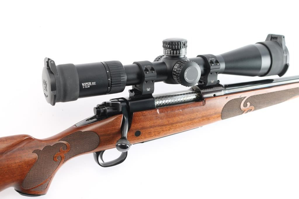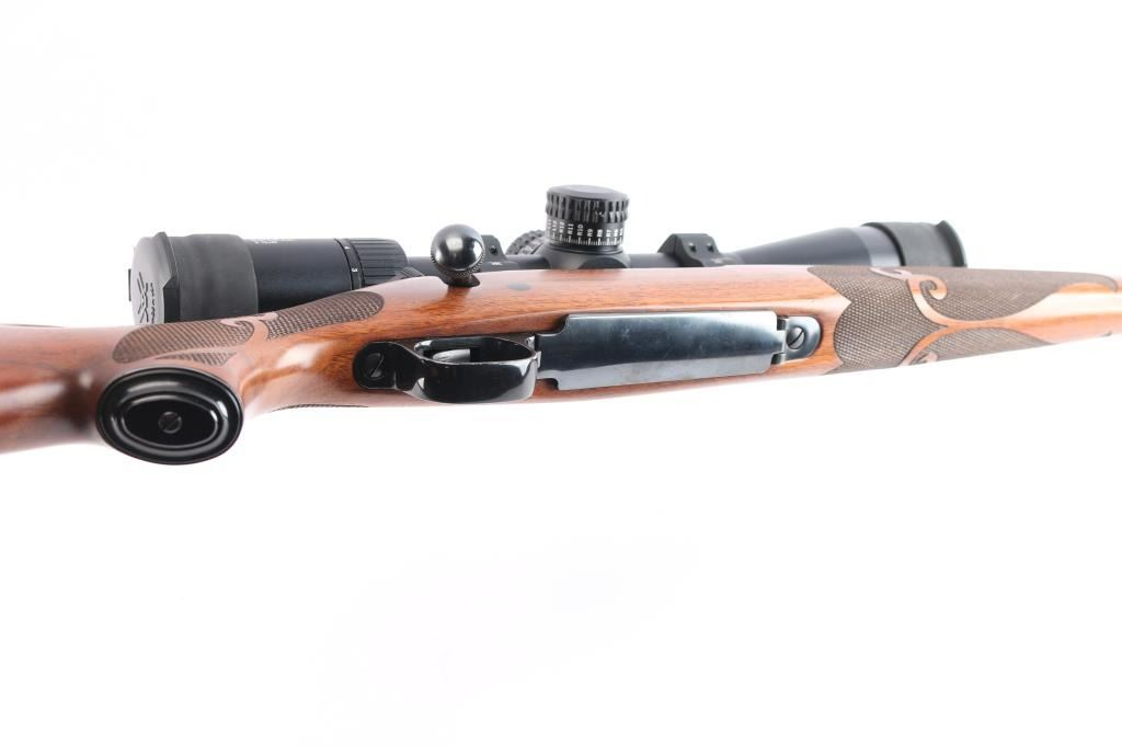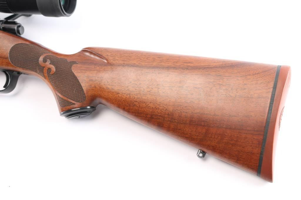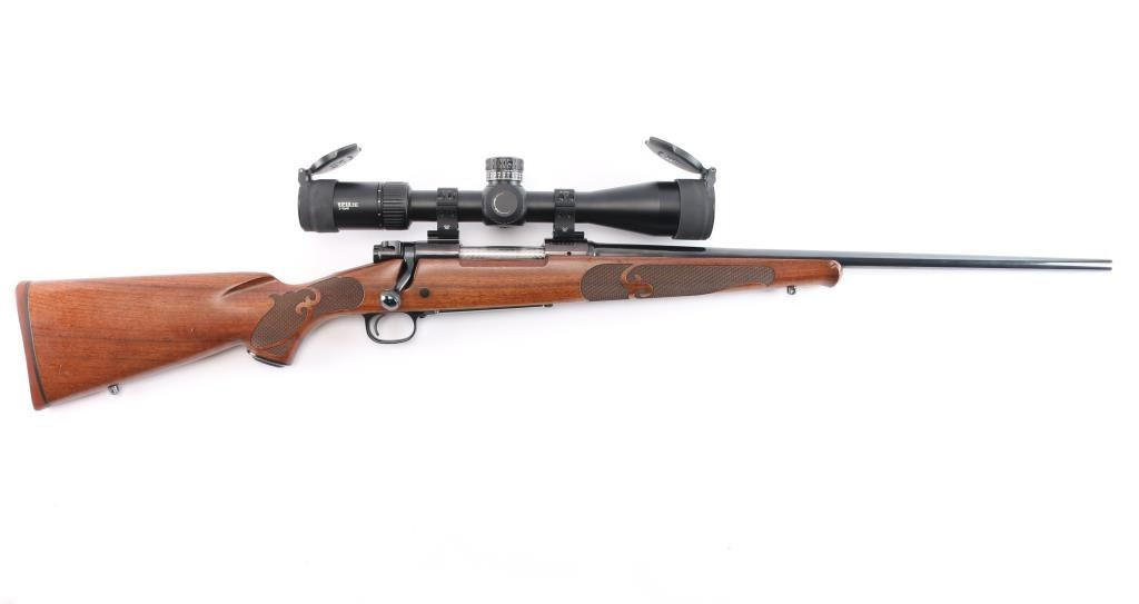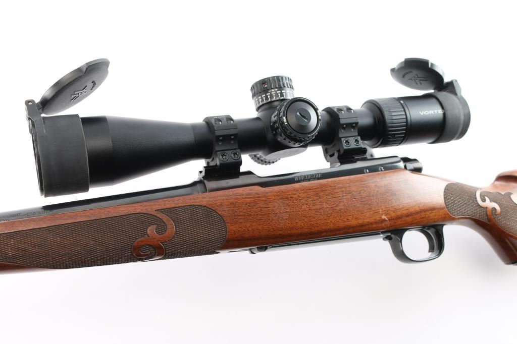 #G1592550. Push feed bolt action rifle, chambered in .270 Win, manufactured circa 1981-82. Features a Hinged floor plate, jeweled bolt, checkered walnut stock w/sling swivel studs, factory red recoil pad and grip cap. Receiver is drilled/tapped and mounts a Vortex 3-15 X 44mm scope w/ EBR-7C (MOA) reticle. 22" barrel with 13 1/2" LOP. Blued barrel and partially plum colored receiver on the chamber, retains approx. 98% finish with a few very tiny scratches and no edge wear. Wood is very good/sound with a few very minor dings and scratches. The bore is excellent/bright, scope is clear. Condition is NRA Excellent. ***Modern Firearm***.
