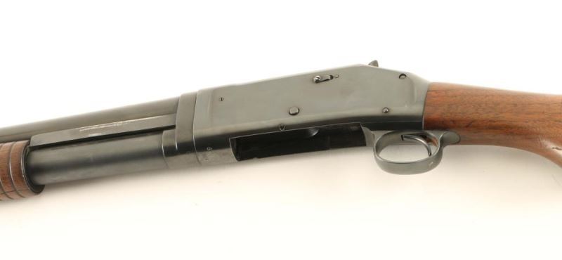 Vintage take-down slide action repeating shotgun chambered for 2 3/4" 12 gauge shells, circa 1940. Professionally reblued finish, cut-down 22" cylinder bore barrel, brass bead front sight, 3/4 length tube magazine, exposed hammer with checkered spur, smooth trigger, grooved walnut slide handle, and smooth pistol grip shoulder stock with aftermarket recoil pad. Approximately 93% of the well accomplished reblue is intact with light wear from use, some handling marks/scratches and a spot of wear on top of the barrel right behind the barrel band. The inside of the triggerguard shows some surface rust behind the trigger. Action is strong, bore is bright and wood stocks are good with several small blemishes & 12.3" LOP. Condition is very good as refinished. ***C&R Firearm*** ***Modern Firearm***