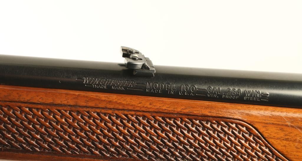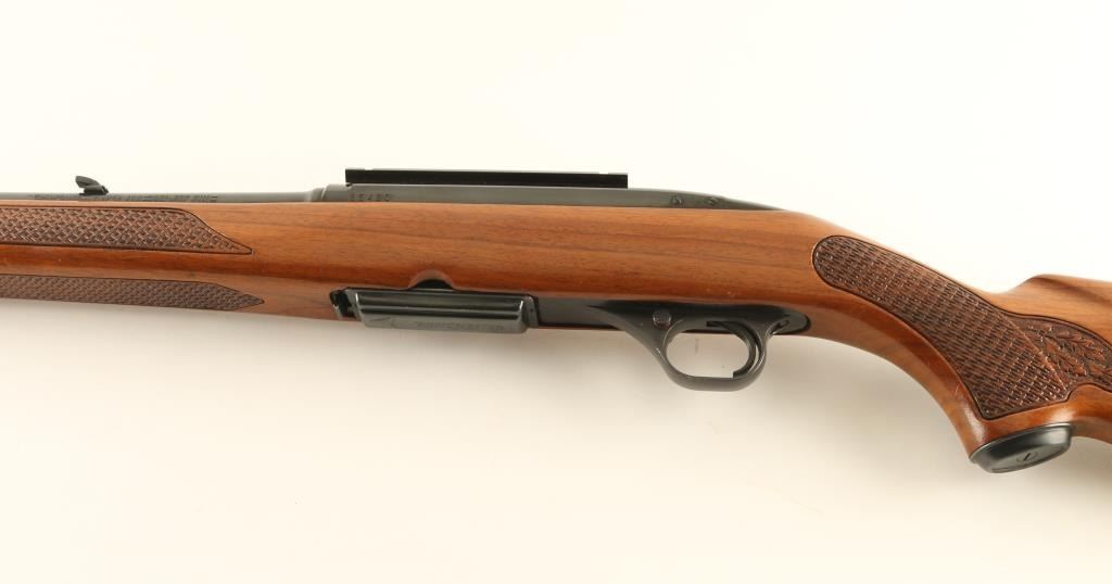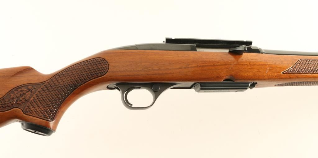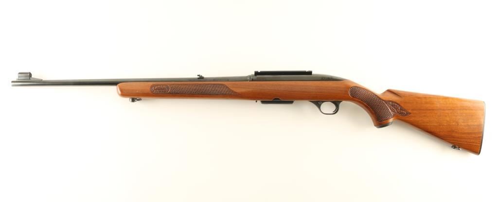 Semiautomatic rifle manufactured circa 1965. Features blued finish, wood stock with curved grip, basket weave "checkered" panels at wrist & forend, flat plastic buttplate, 22" barrel, hooded blade front sight, folding adjustable rear sight, detachable box magazine, manual safety, sling swivels. Bore is very good condition. Retains 90% blue, with scratches & scrapes. Wood is very good condition with dents & scratches. Includes (1) magazine. Condition is NRA Very Good ++ *** C&R Firearm ***