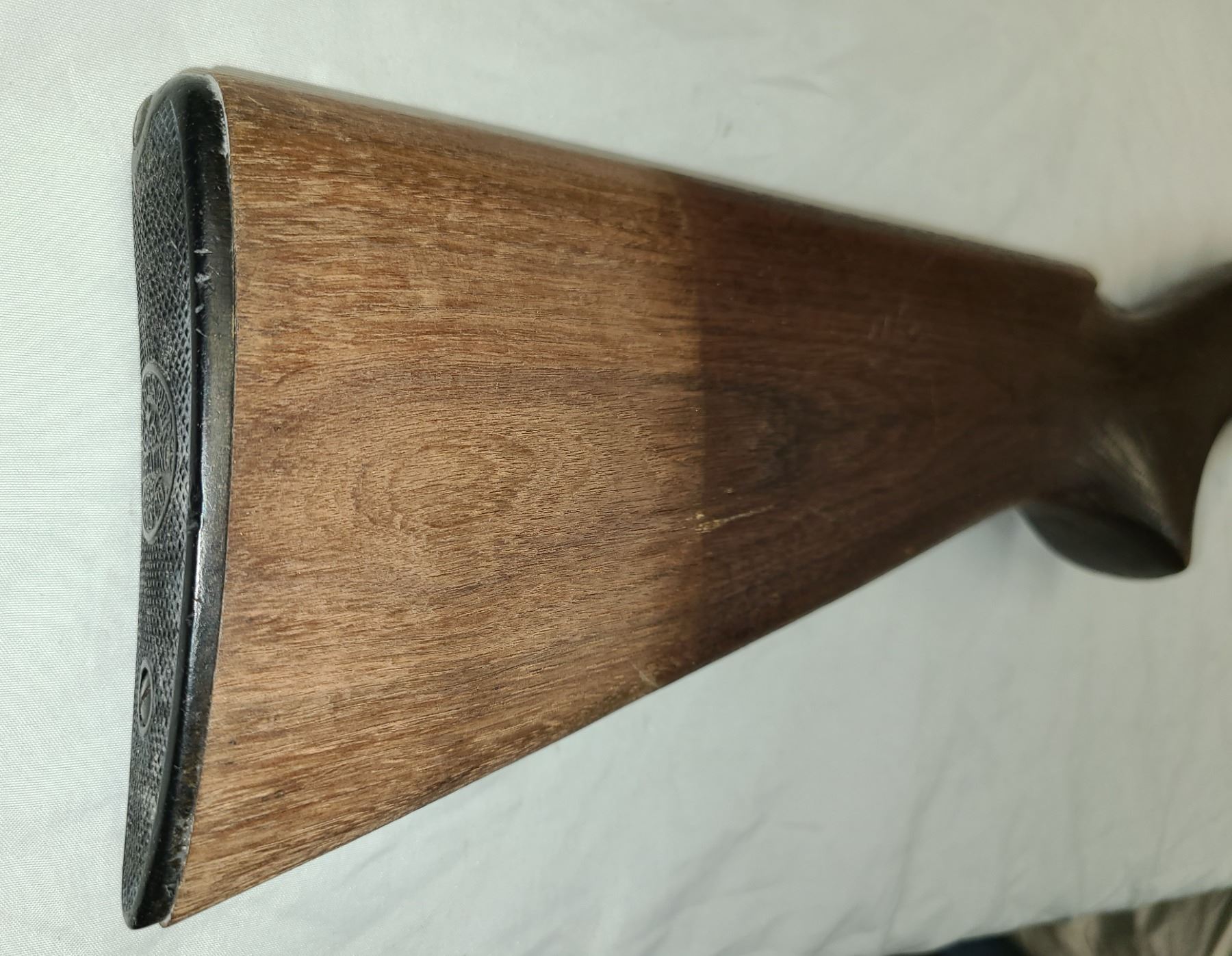 receiver and faded area 1/2 way along stock to butt plate from a rubber recoil pad